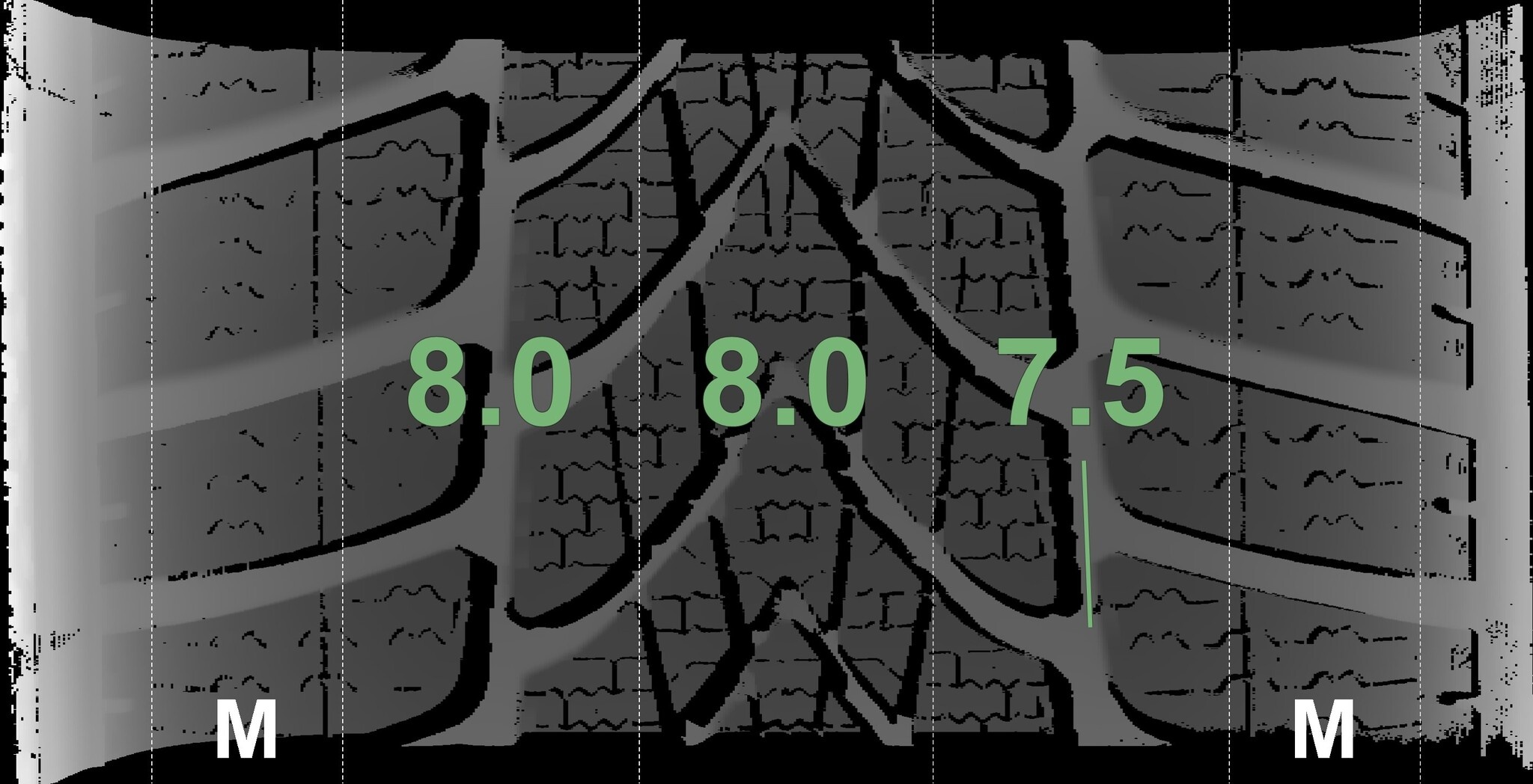 Die gemessenen Profiltiefen und Details zu den Felgen sind oben abgebildet.