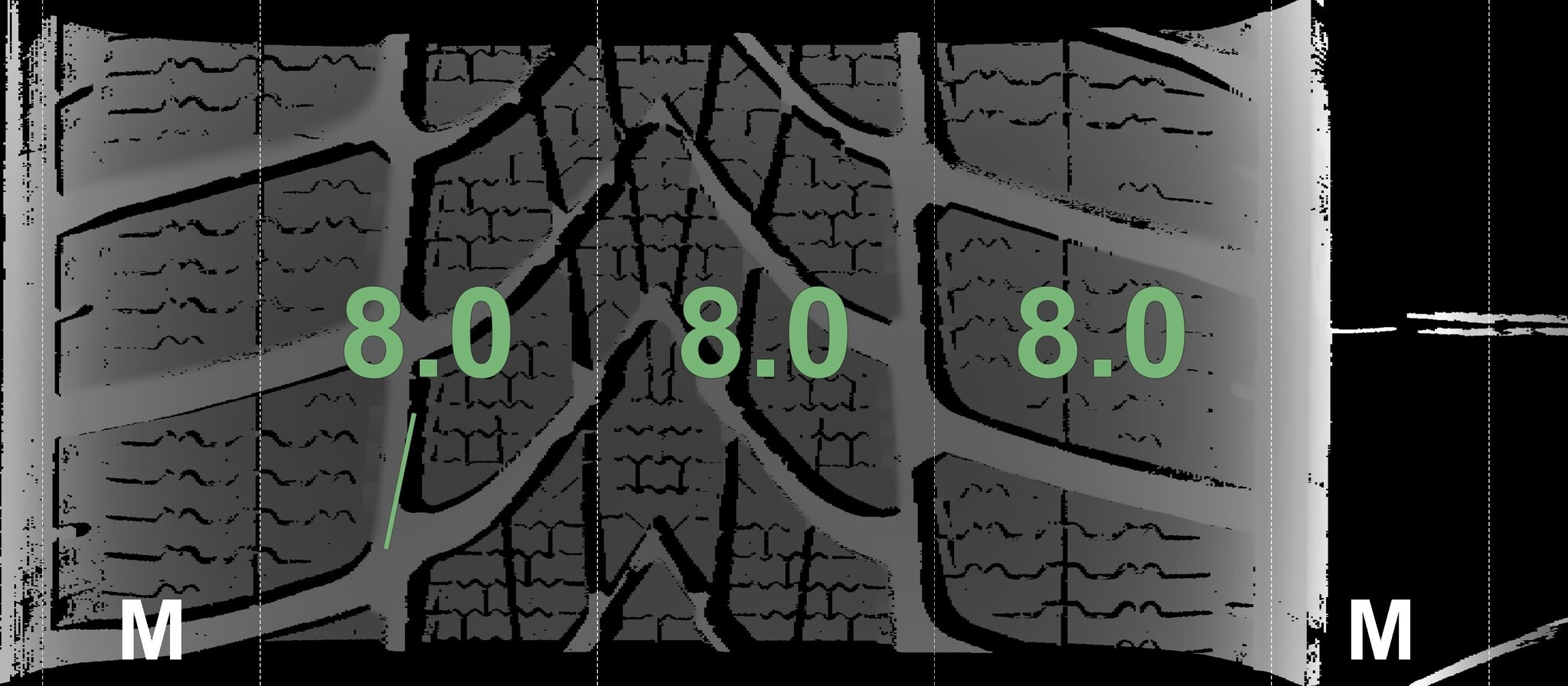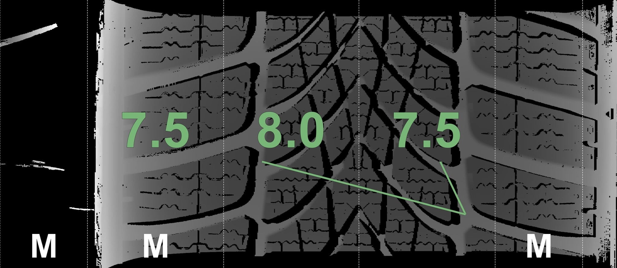 Die gemessenen Profiltiefen und Details zu den Felgen sind oben abgebildet.