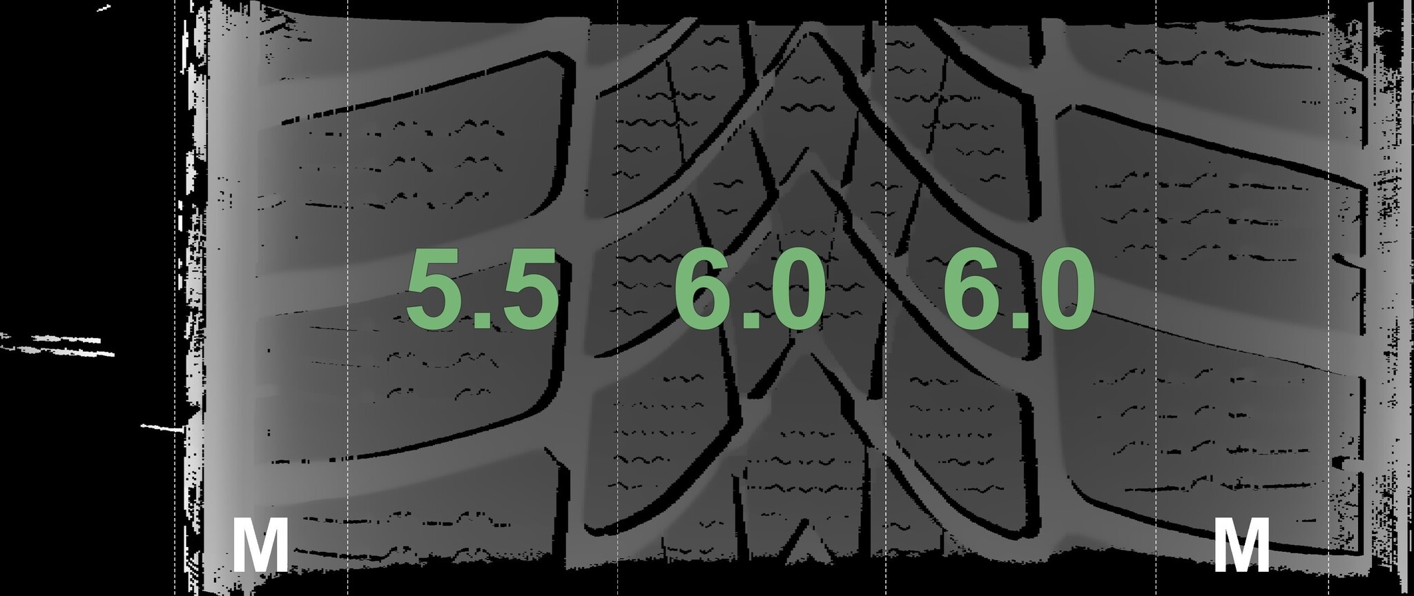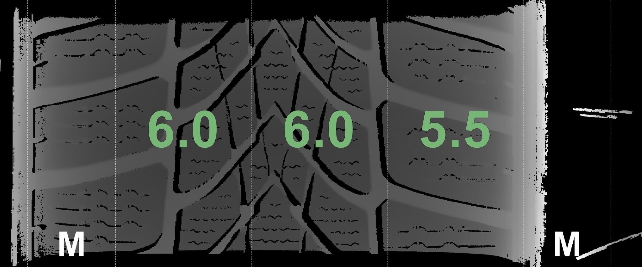Zustand | Profiltiefe | DOT | Hinterachse Links | Gebraucht | 5,5 mm | 4419 |