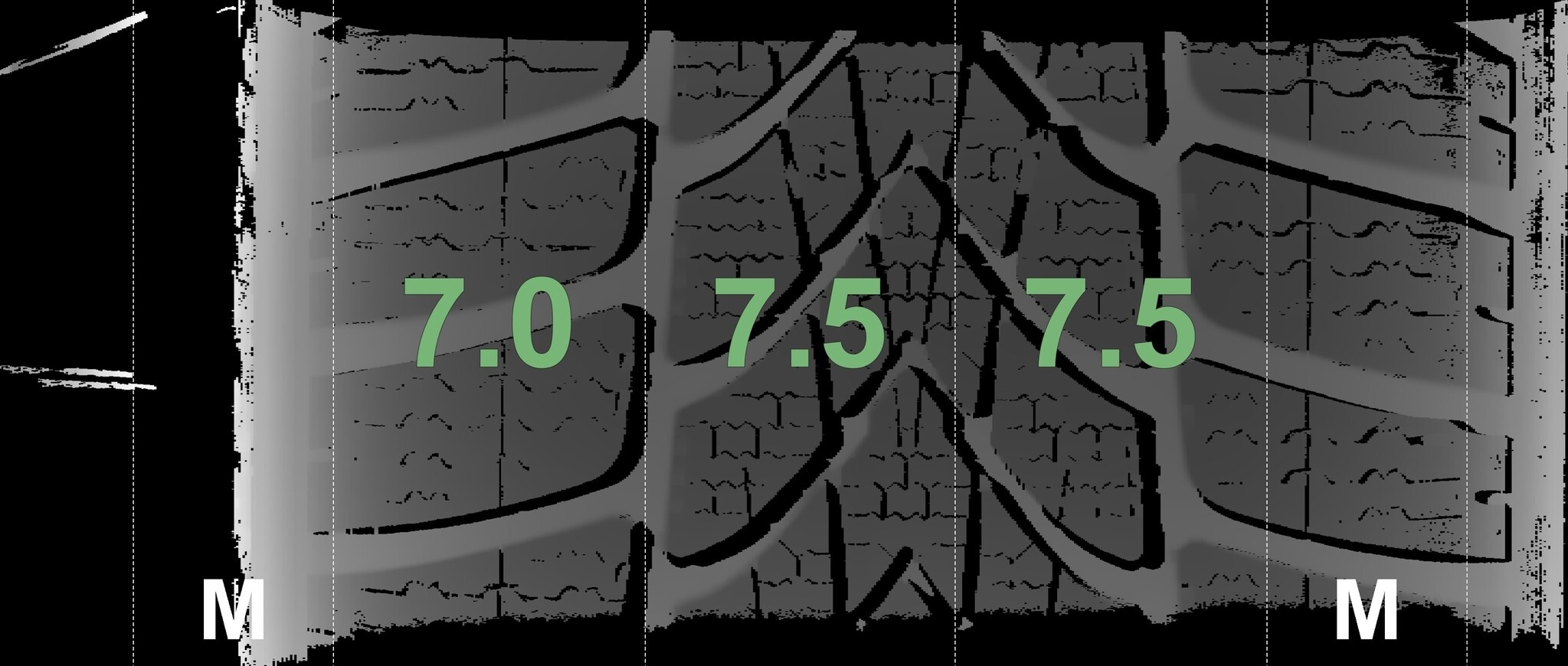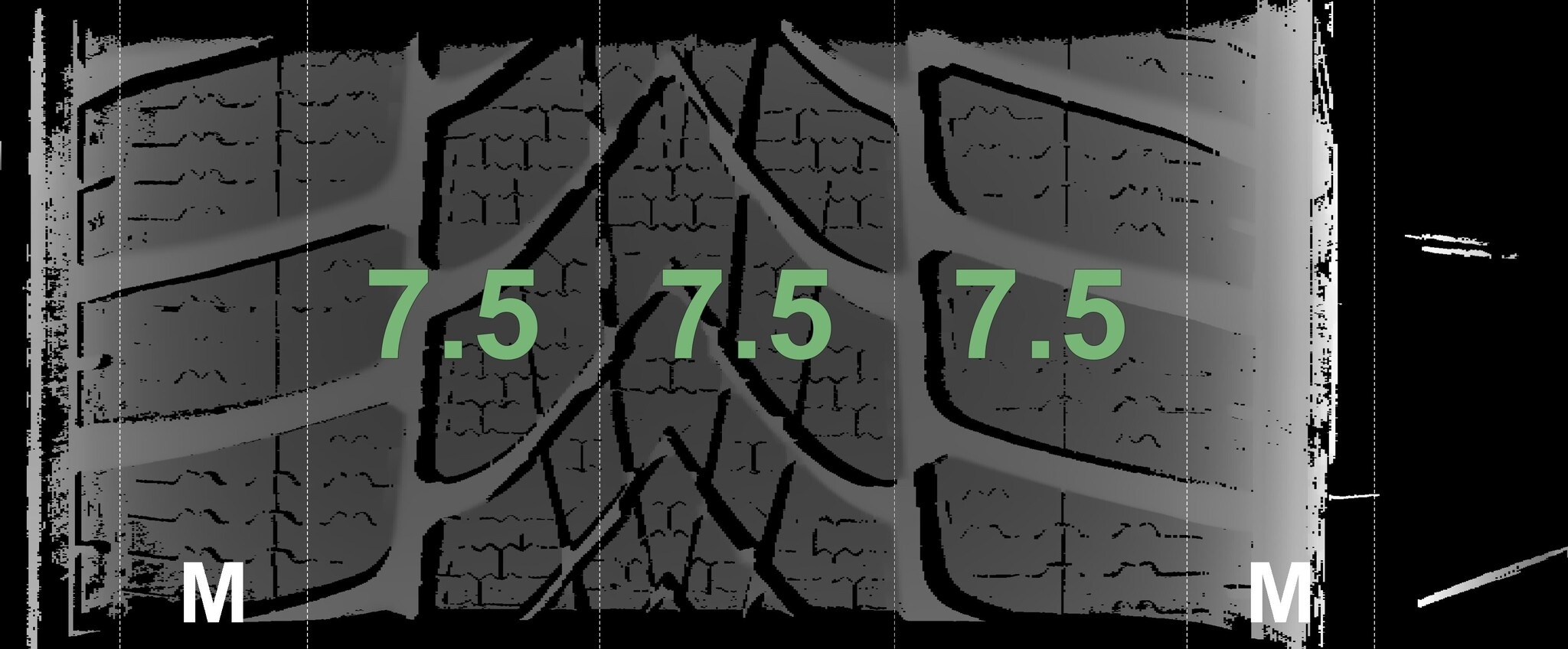 Zustand | Profiltiefe | DOT | Vorderachse Rechts | Gebraucht | 7,5 mm | 4419 |