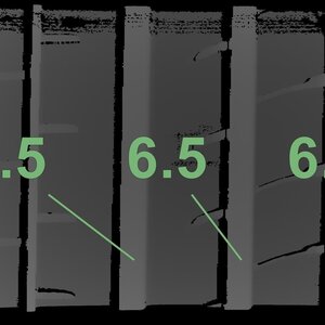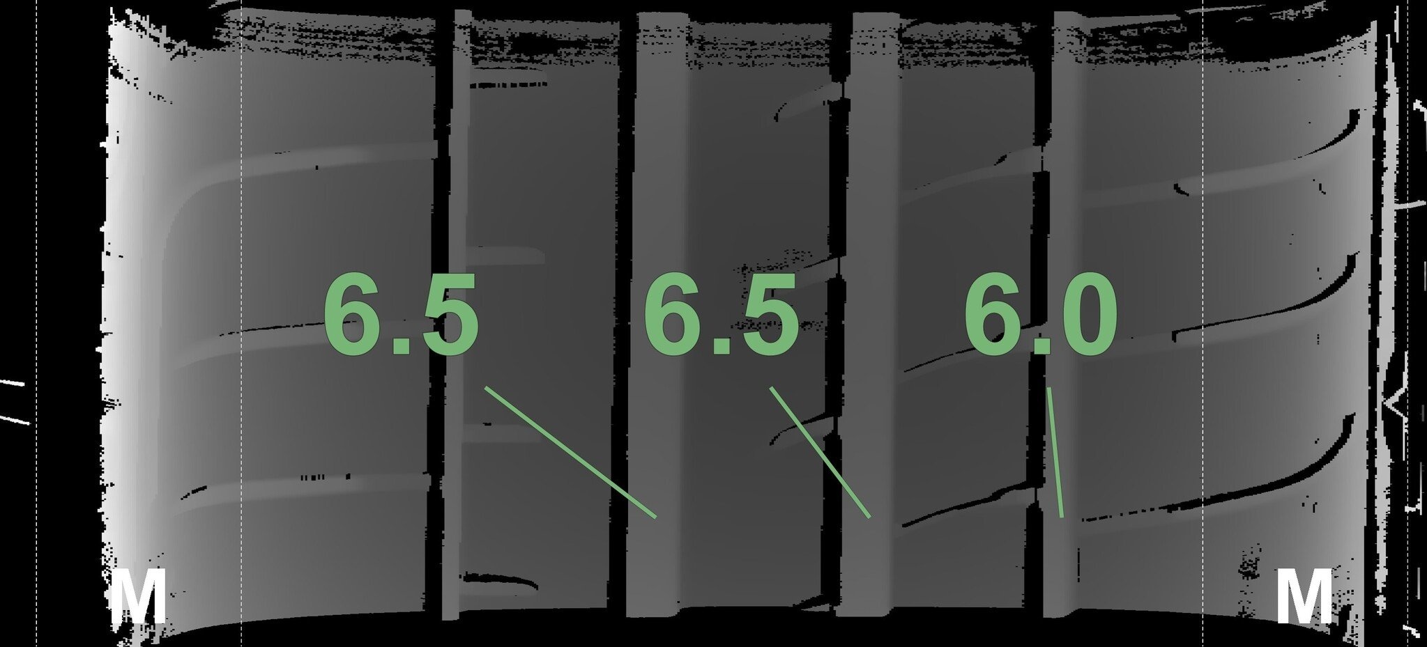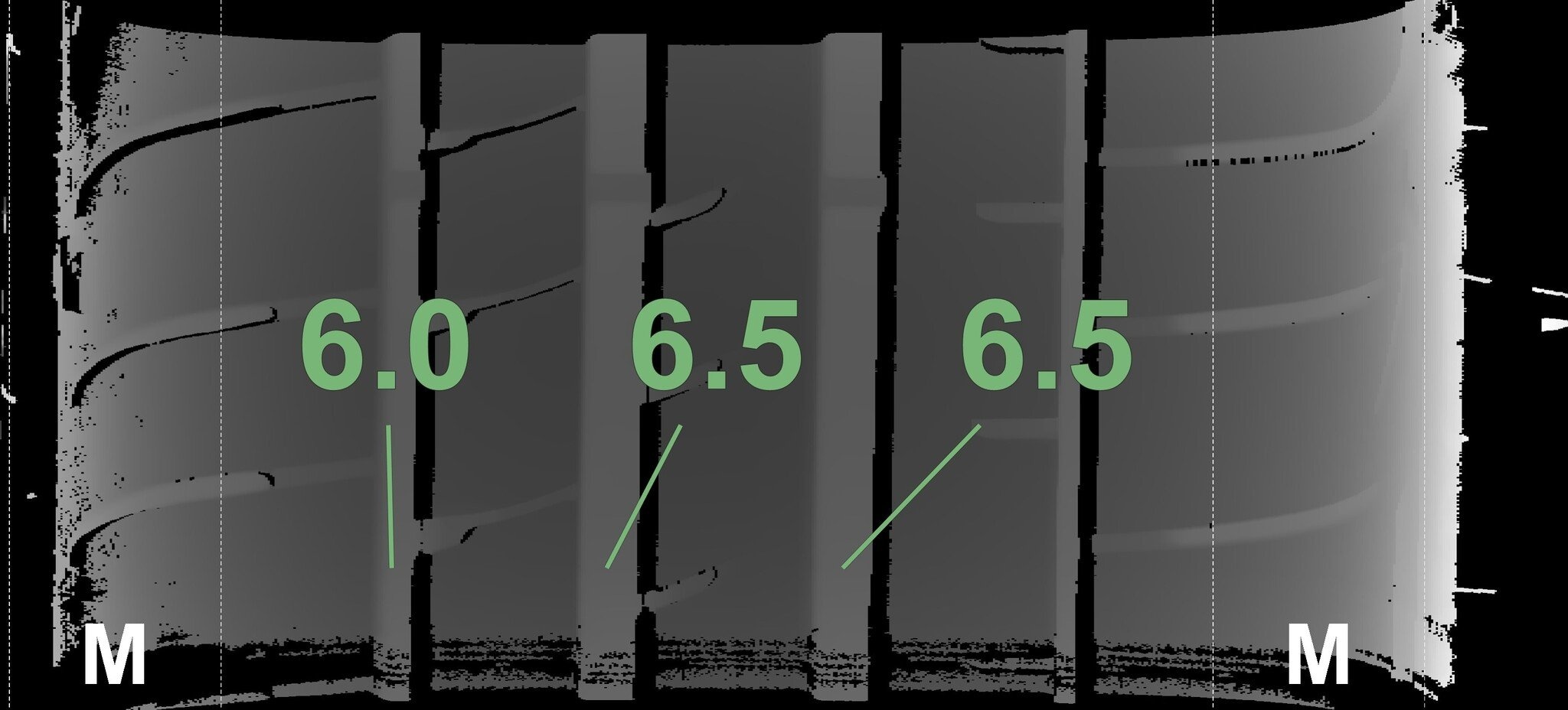 Die gemessenen Profiltiefen und Details der Felgen sind oben gezeigt.