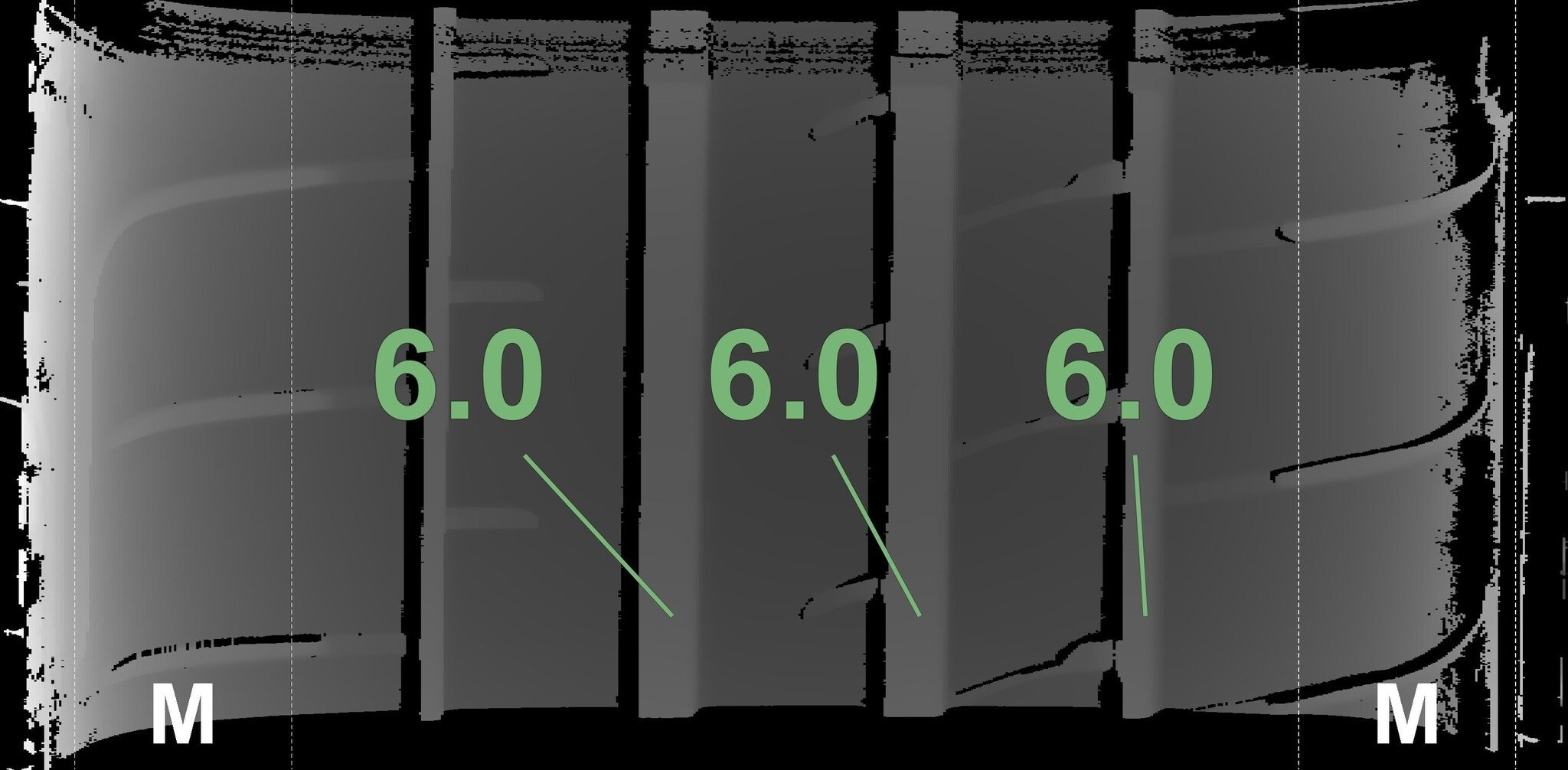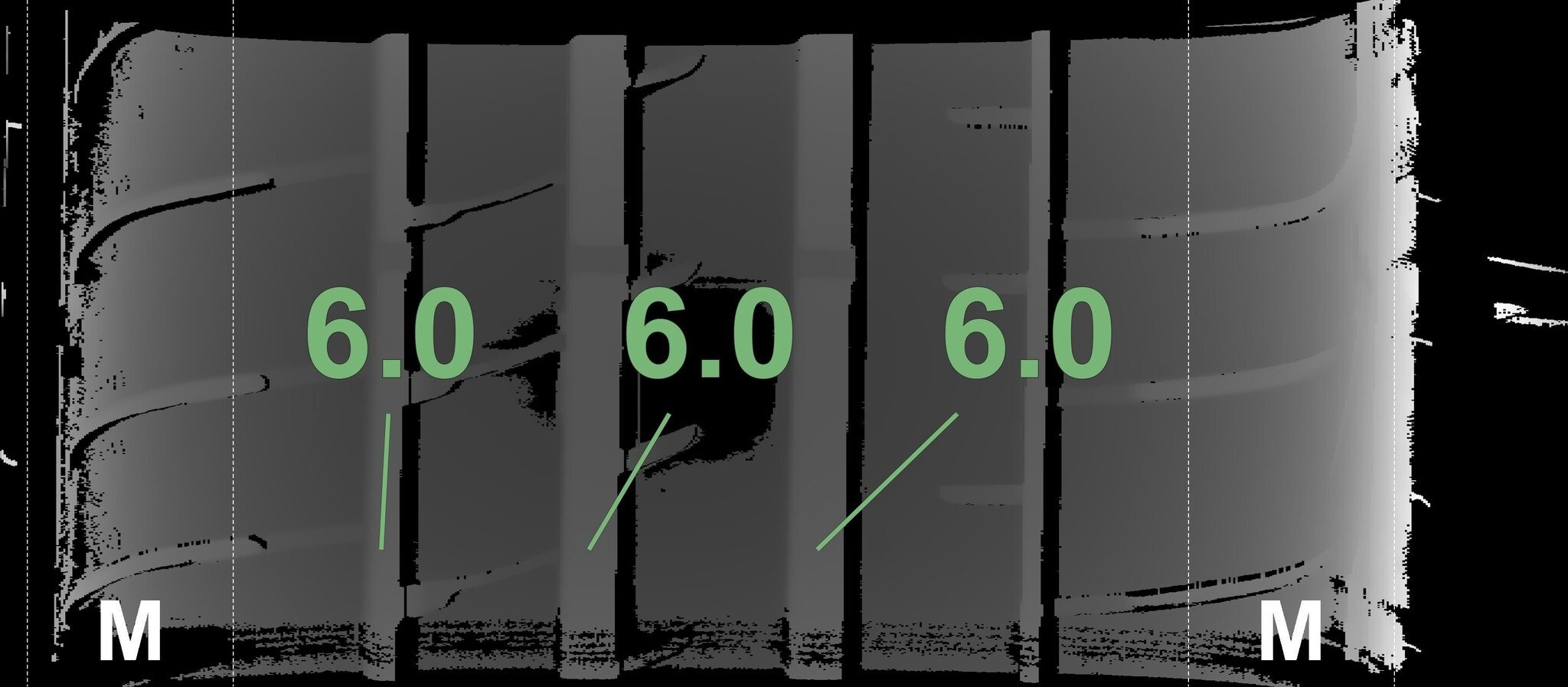 | Zustand | Profiltiefe | DOT | Vorderachse Links | Gebraucht | 6,0 mm | 2723 |