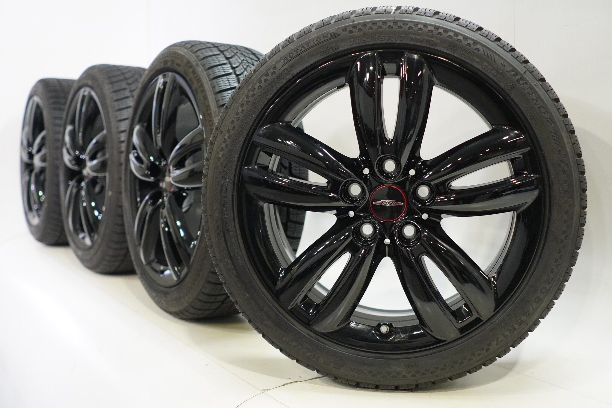 Original Radsatz von Mini, styling JCW501, 17 Zoll Felgen mit Dunlop SPWintersport 4D Runflat Winterkompletträder. Diese Felgen sind Original-Felgen der Marke Mini und geeignet für: Mini Cooper / S / One / Cabrio F55 F56 F57.