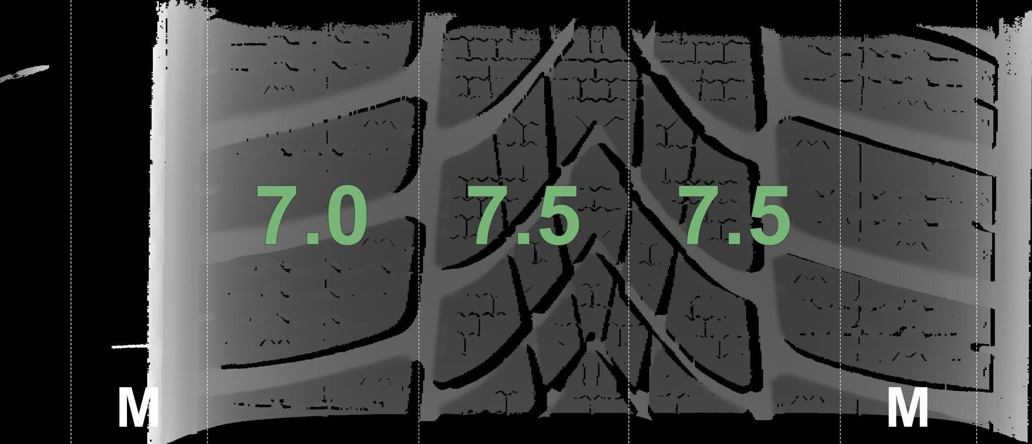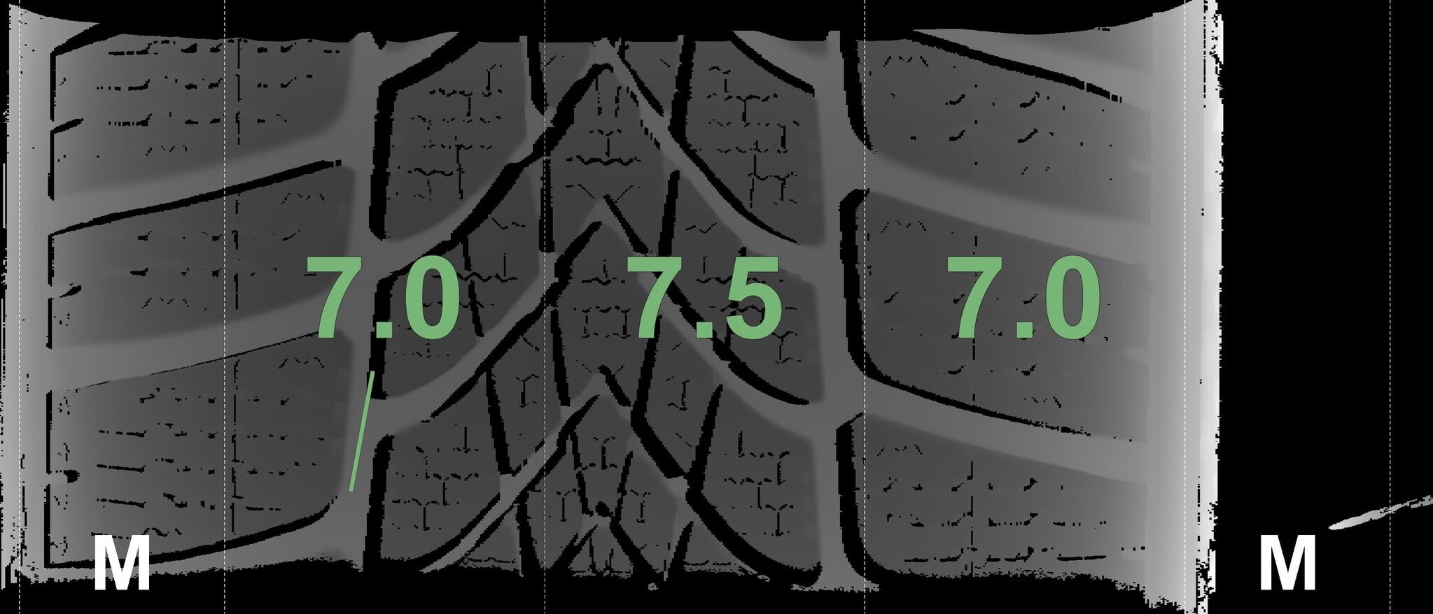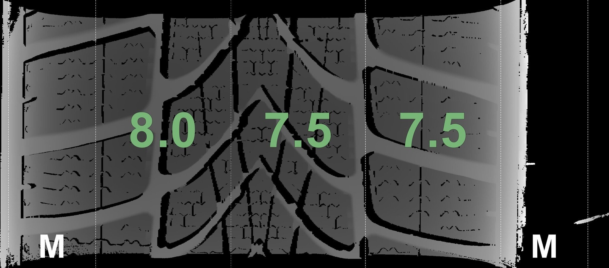 Die gemessenen Profiltiefen und die Details der Felgen sind oben dargestellt.