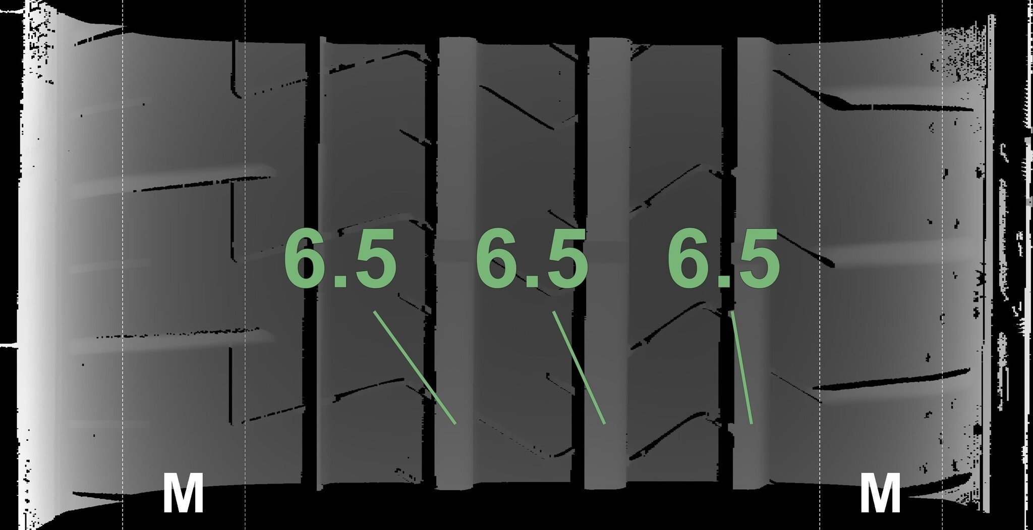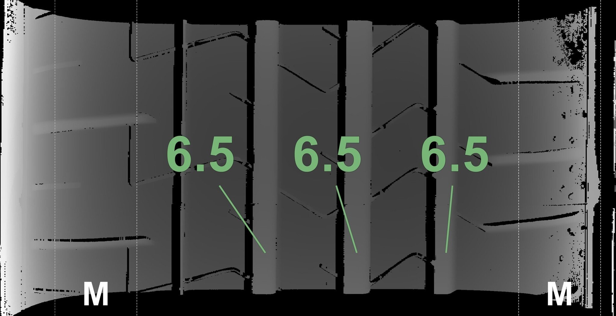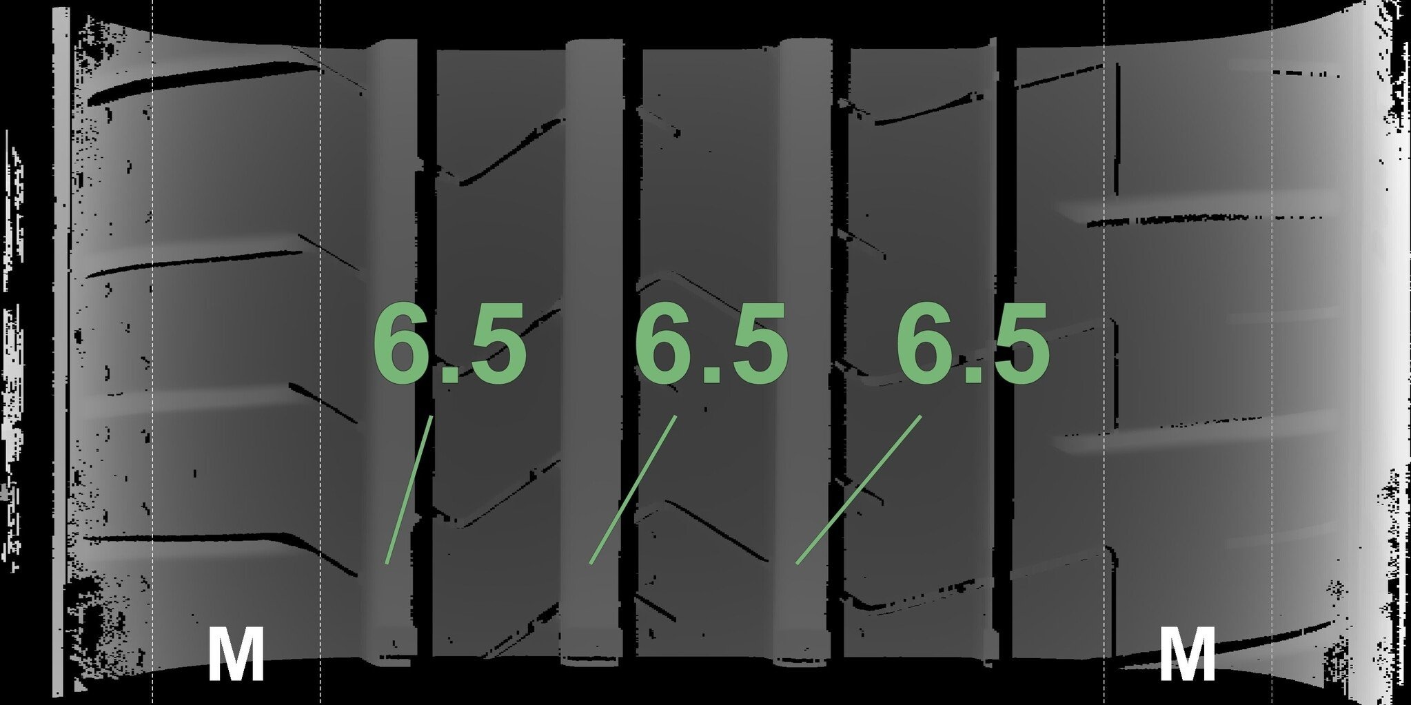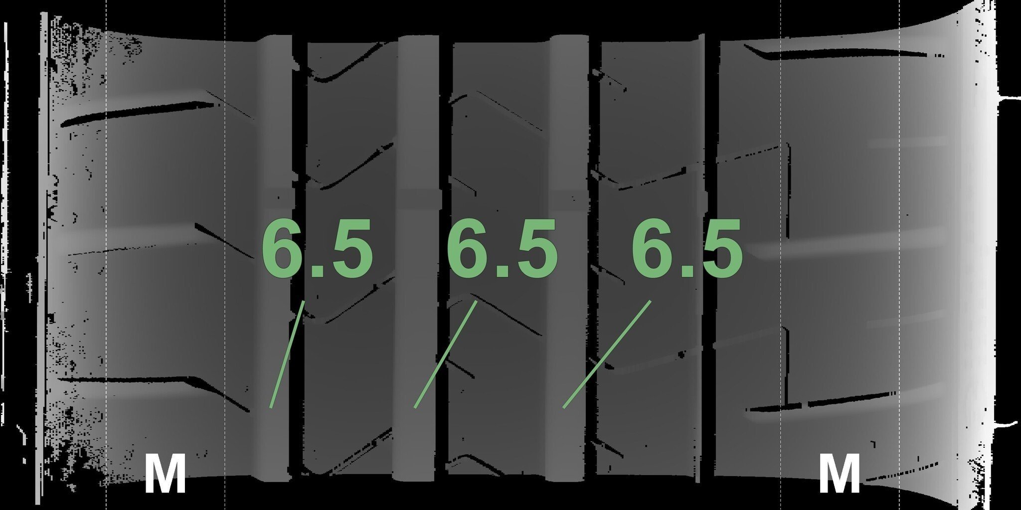 Die gemessenen Profiltiefen und Details der Felgen sind oben dargestellt.