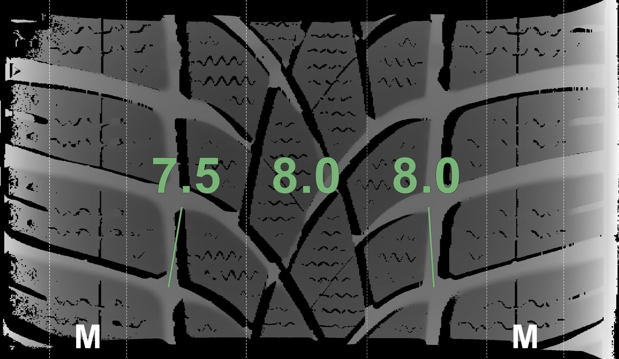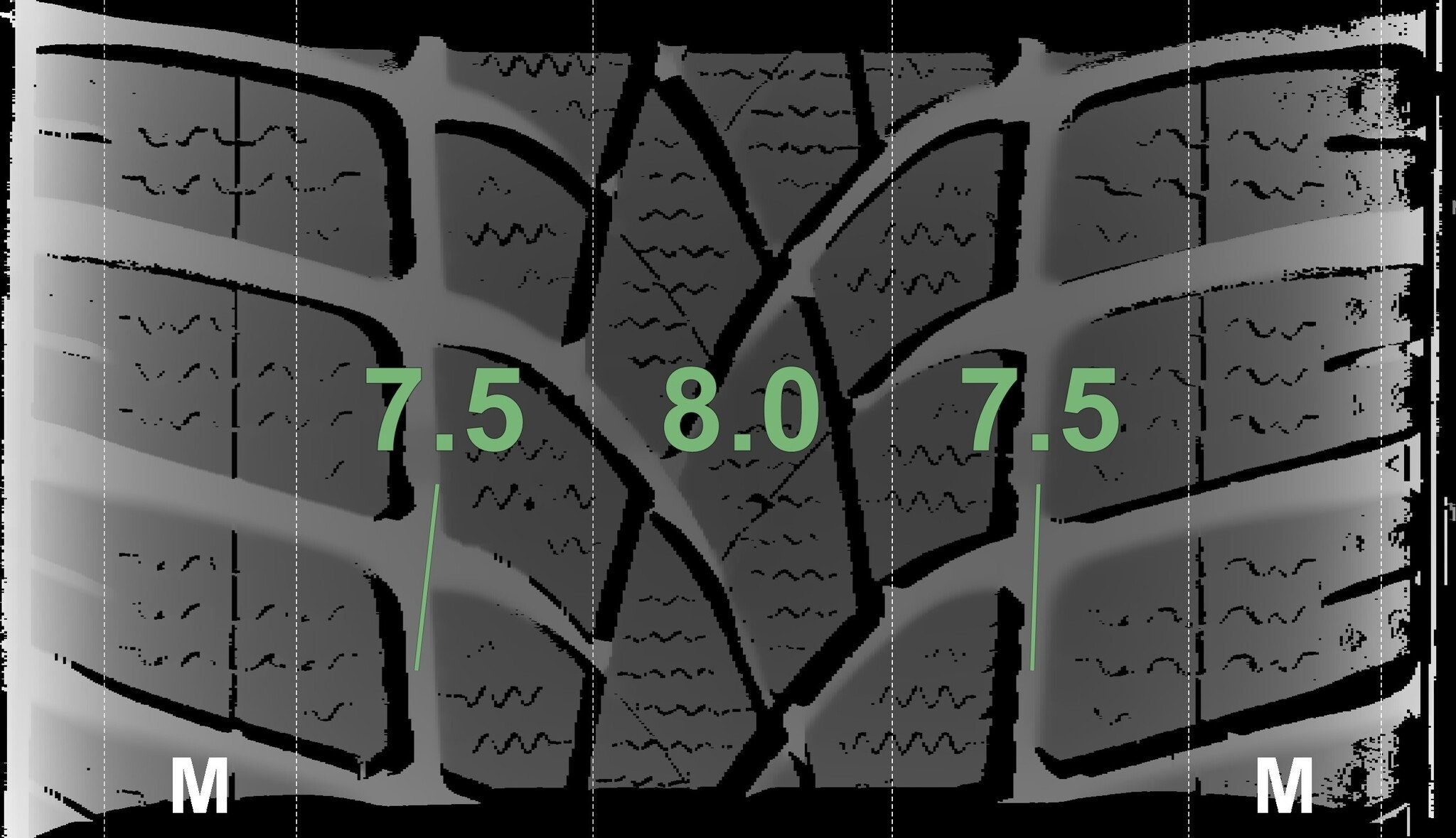 Die gemessenen Profiltiefen und Details zu den Felgen sind oben abgebildet.