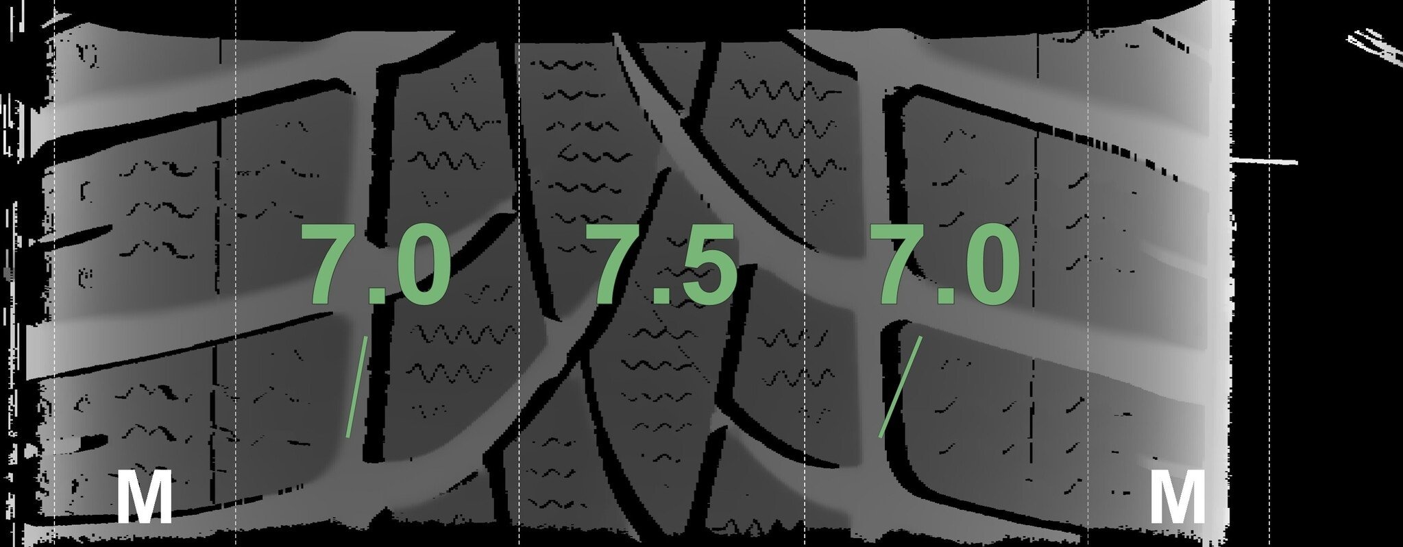 Die gemessenen Profiltiefen und die Details der Felgen sind oben angezeigt.