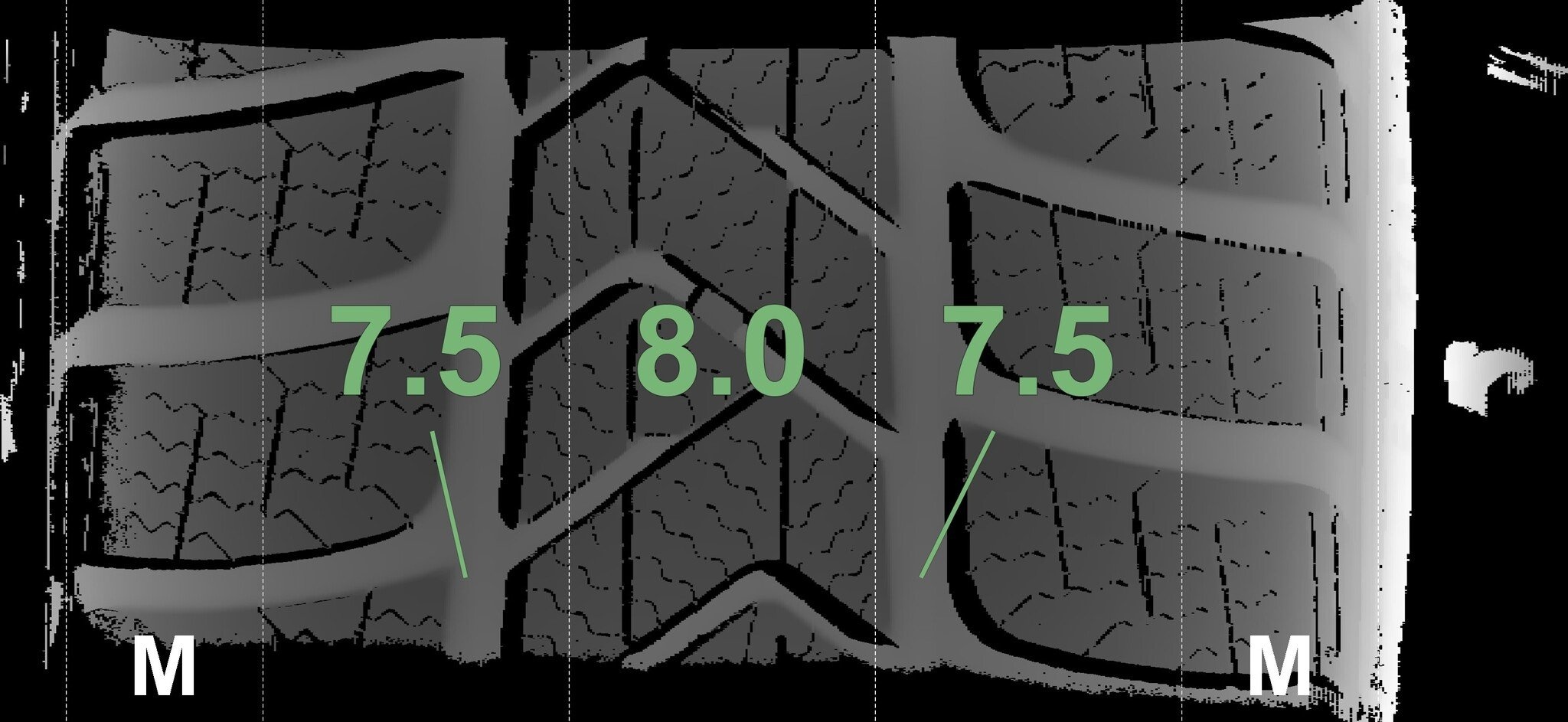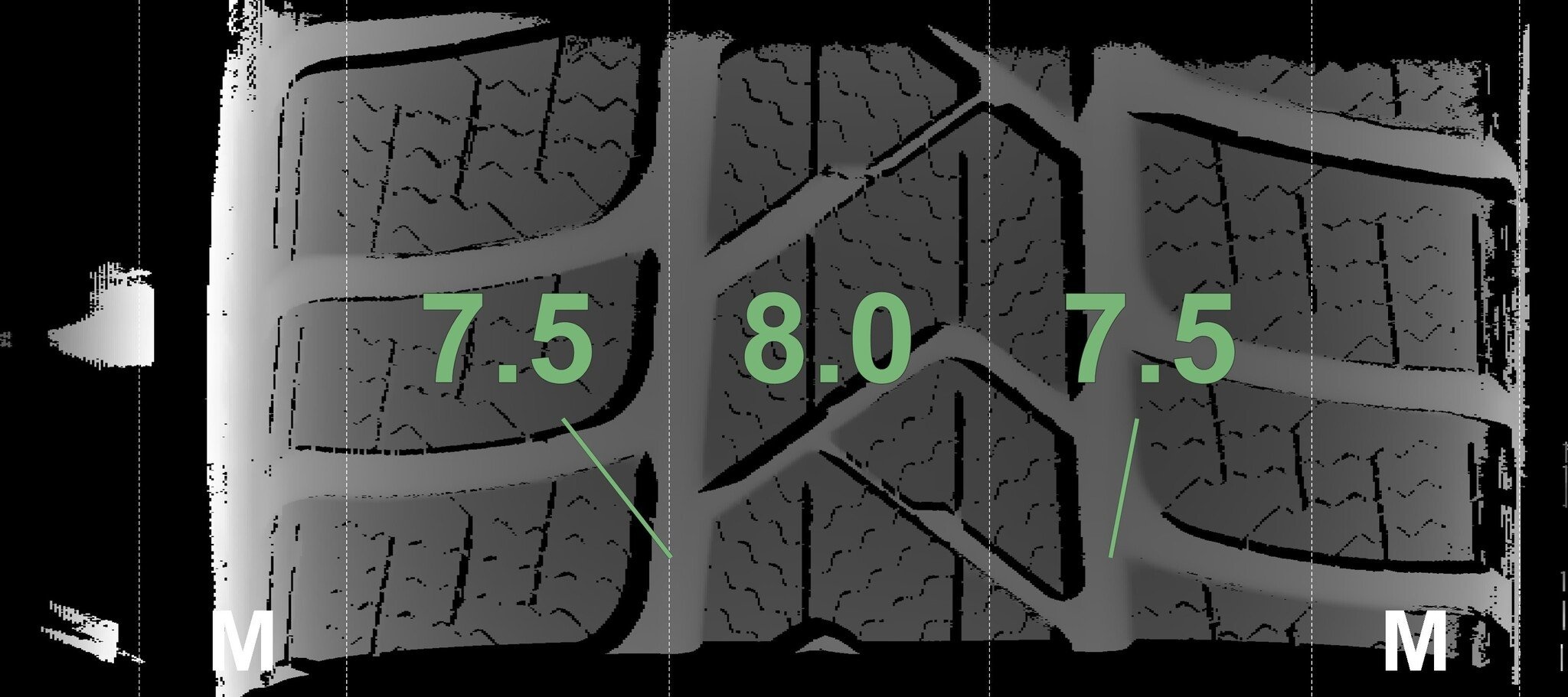 Die gemessenen Profiltiefen und Details zu den Felgen sind oben abgebildet.