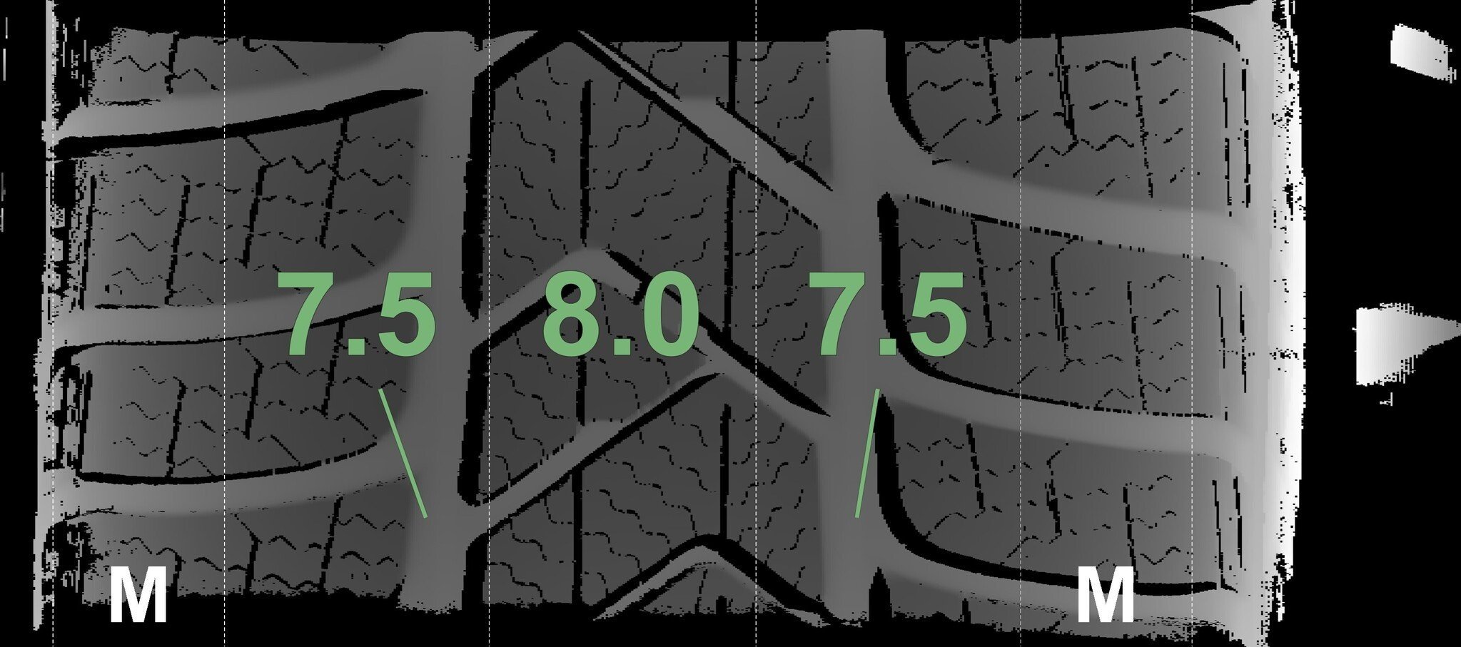 | Zustand | Profiltiefe | DOT | Vorderachse Links | Neu | 7,5 mm | 2125 |