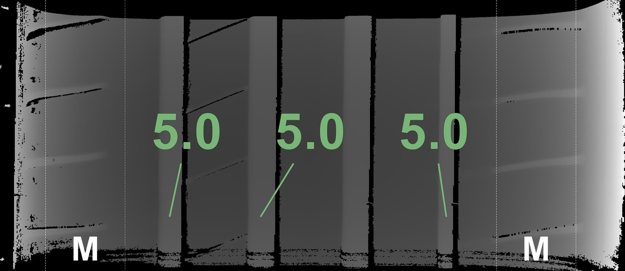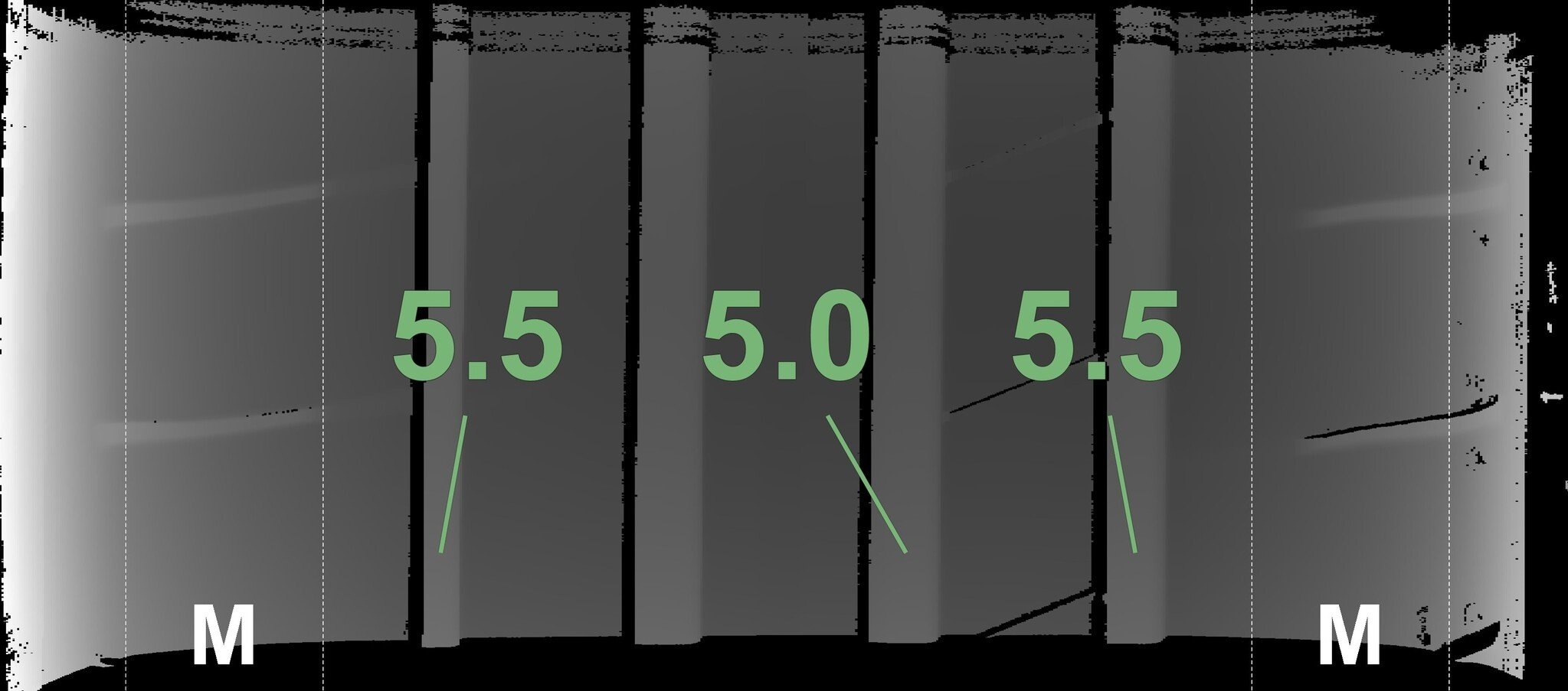 Die gemessenen Profiltiefen und die Details der Felgen sind oben dargestellt.