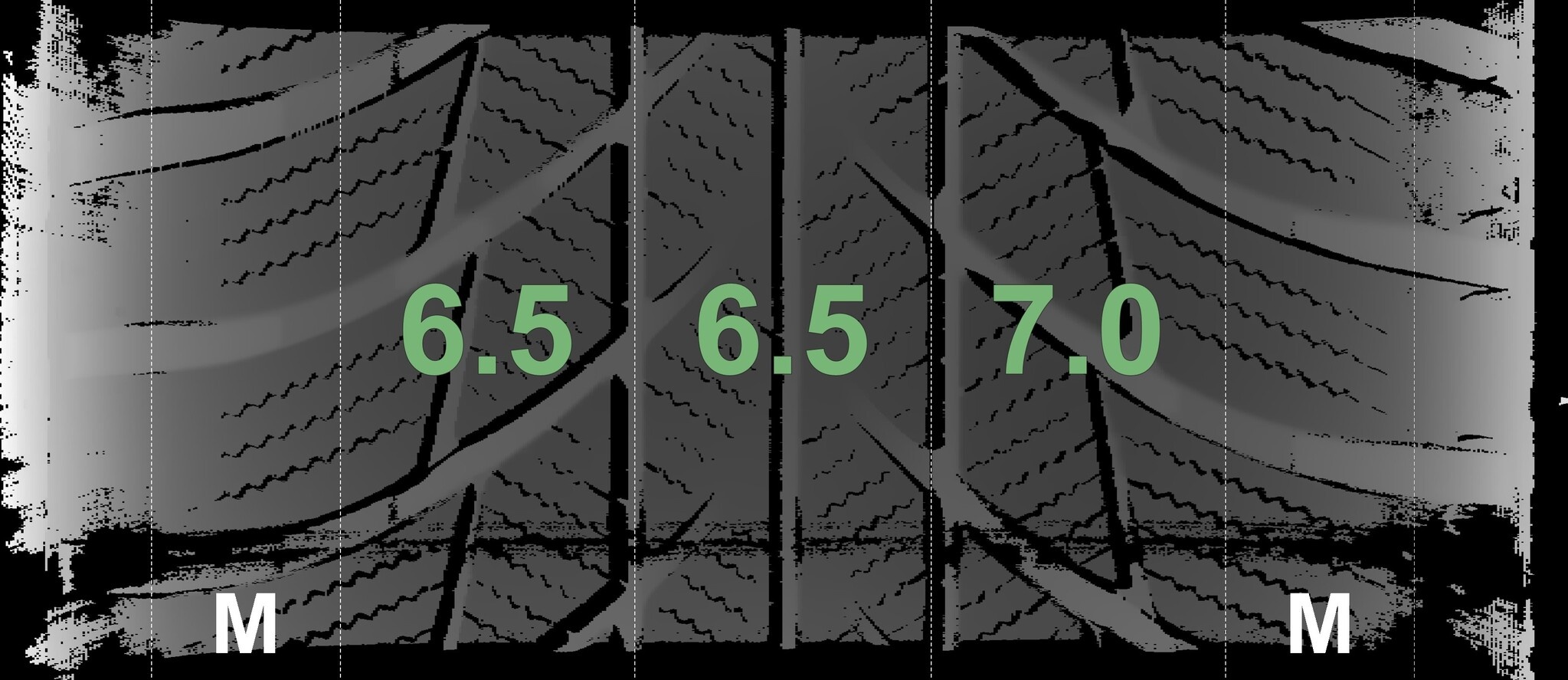 Die gemessenen Profiltiefen und Details der Felgen sind oben abgebildet.