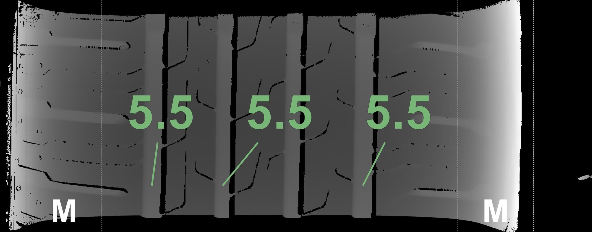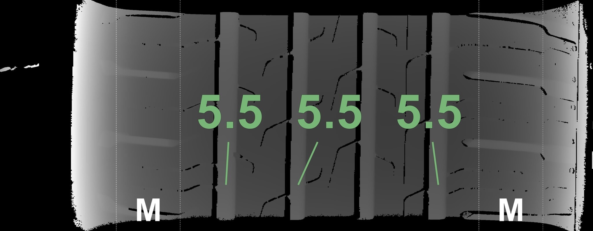 | Zustand | Profiltiefe | DOT | Vorderachse Links | Gebraucht | 5.5 mm | 3121 |