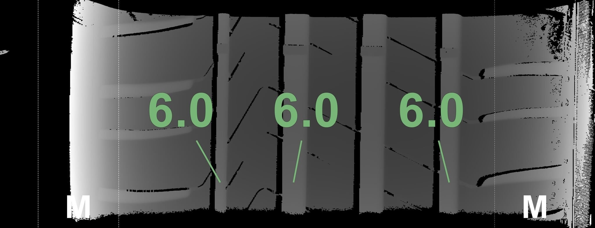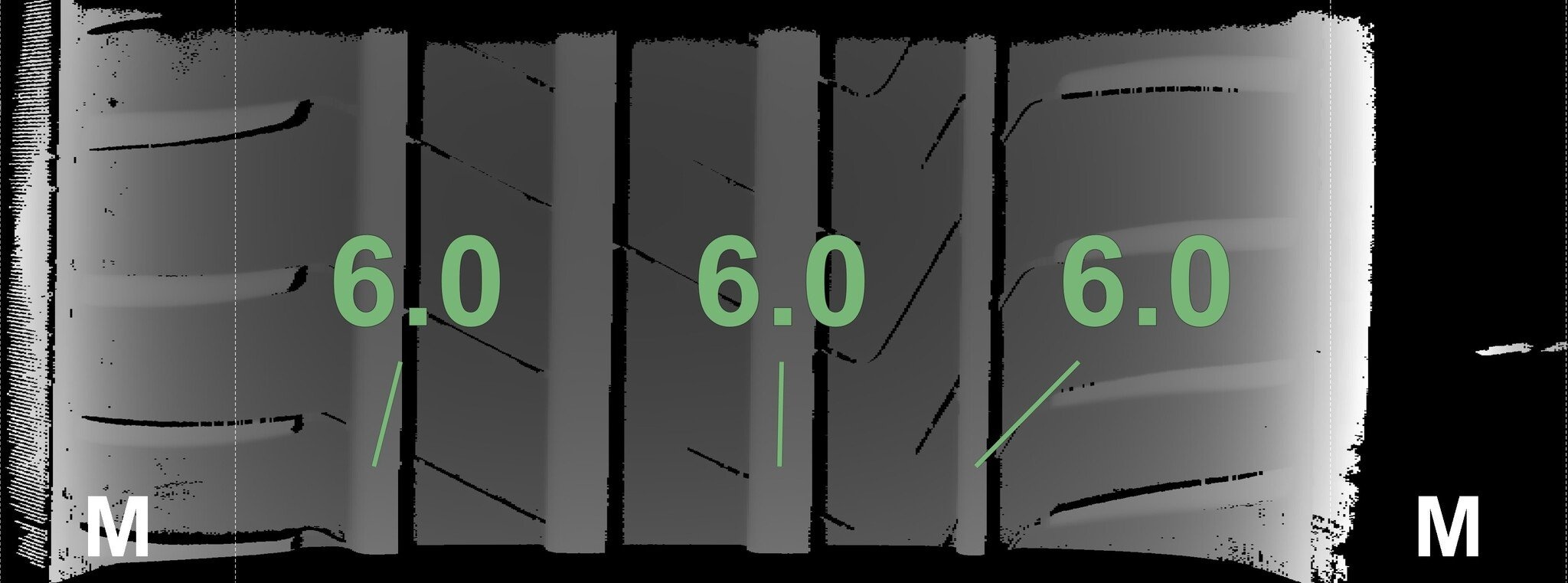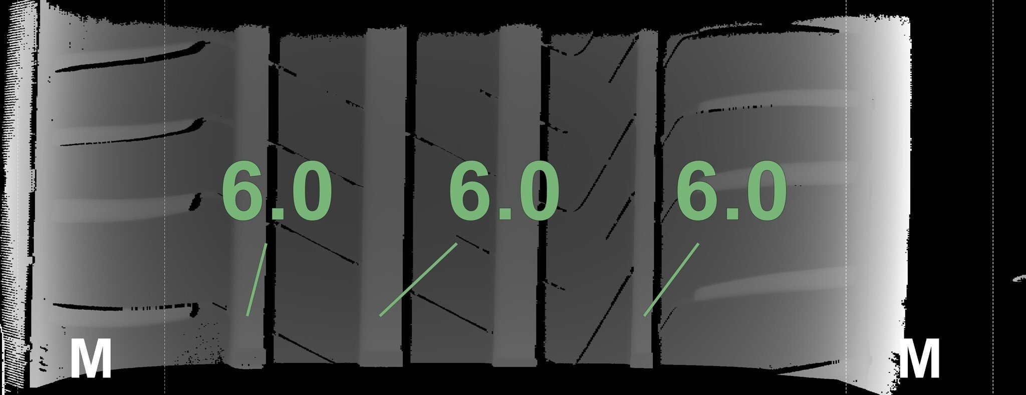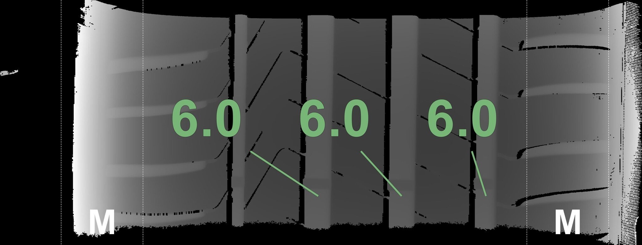 | Zustand | Profiltiefe | DOT | Vorderachse Links | Demo-Noppen noch sichtbar | 6.0 mm | 1219 |