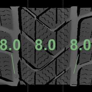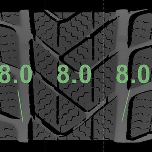 | Zustand | Profiltiefe | DOT | Vorderachse Links | Neu | 8,0 mm | 3722 |