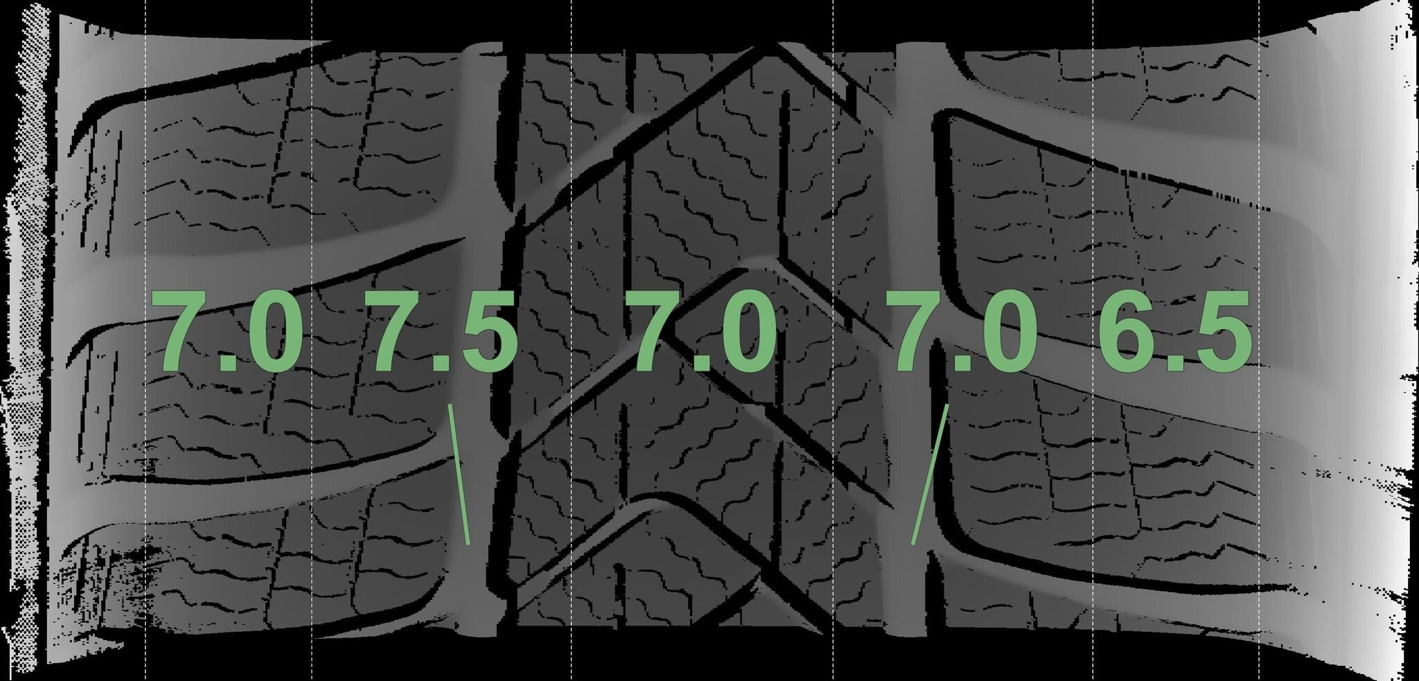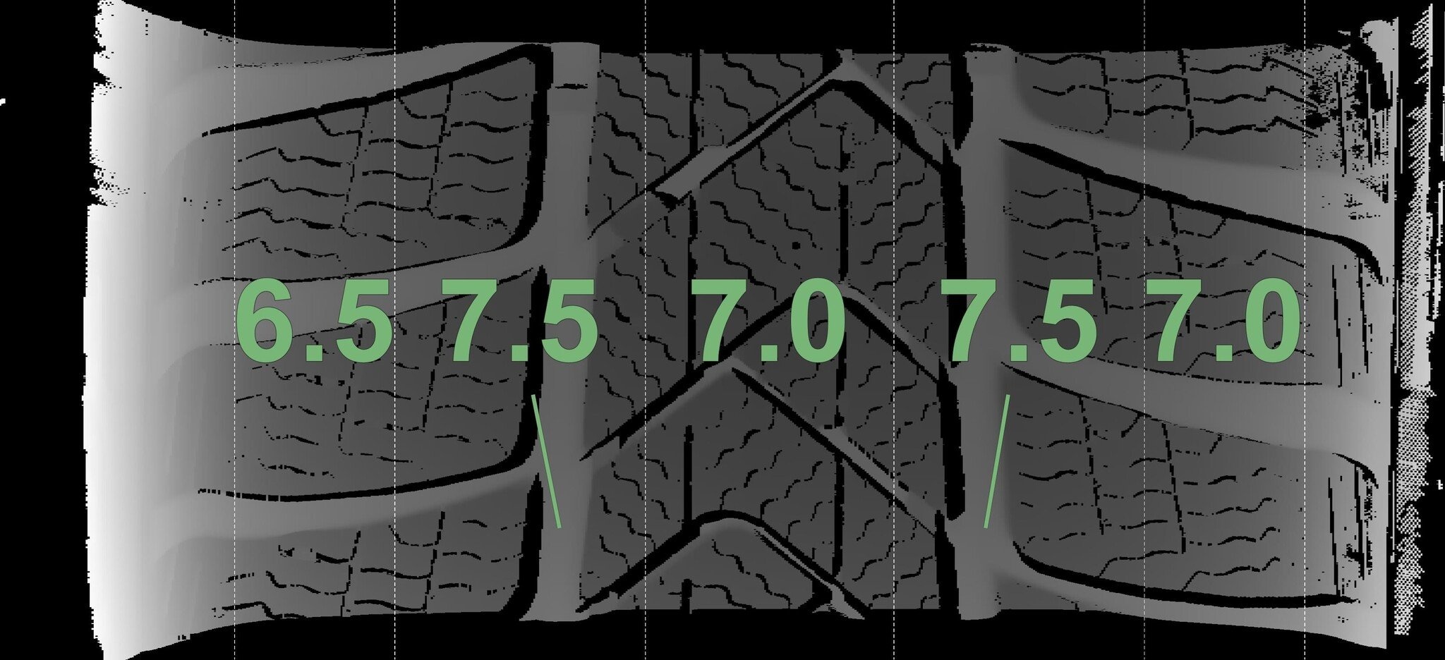 Die gemessenen Profiltiefen und Details zu den Felgen sind oben abgebildet.