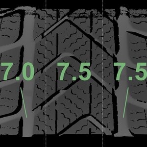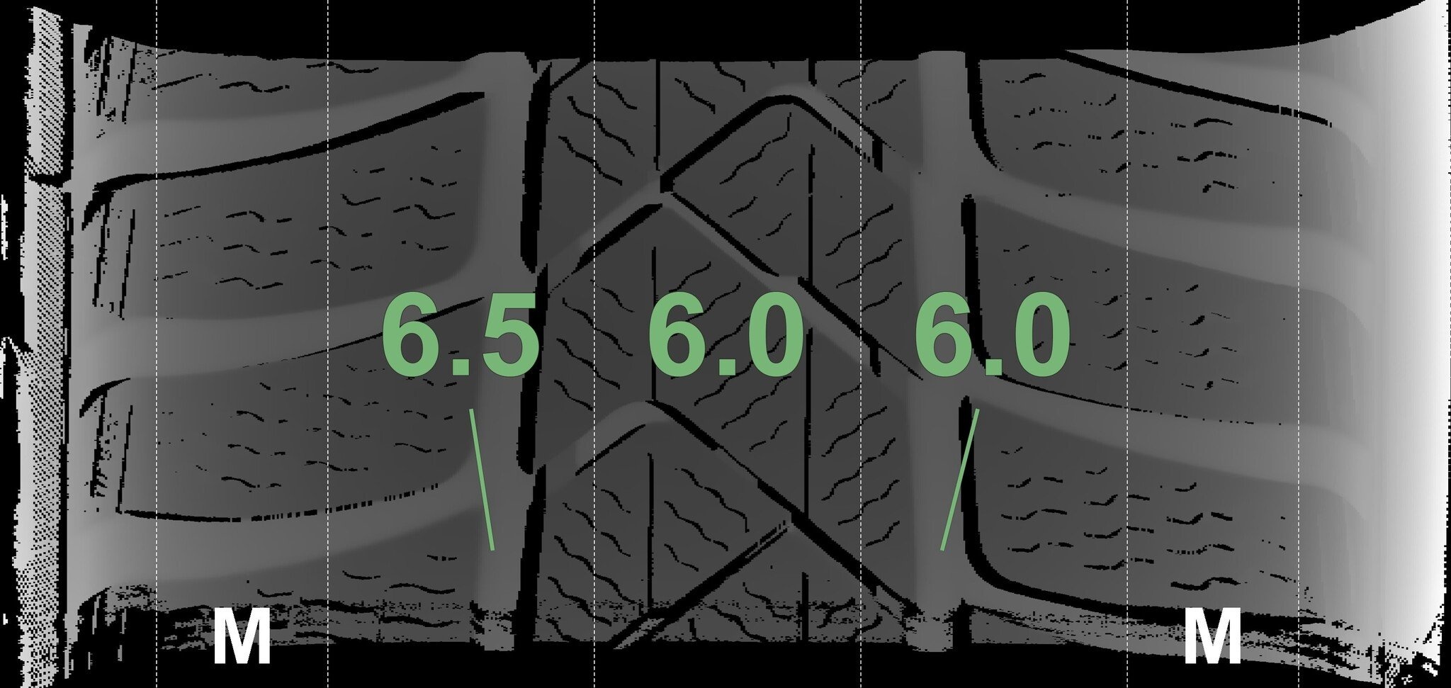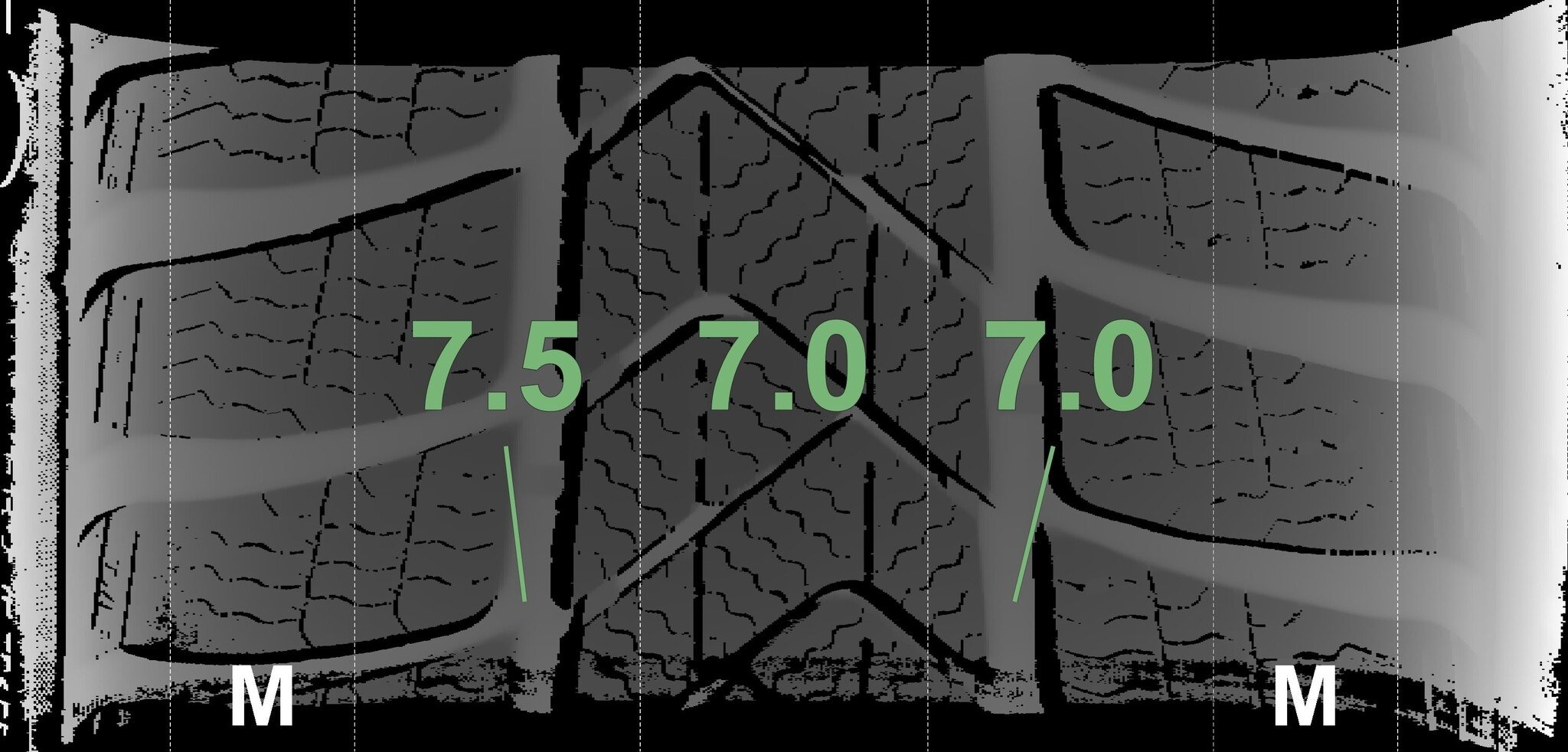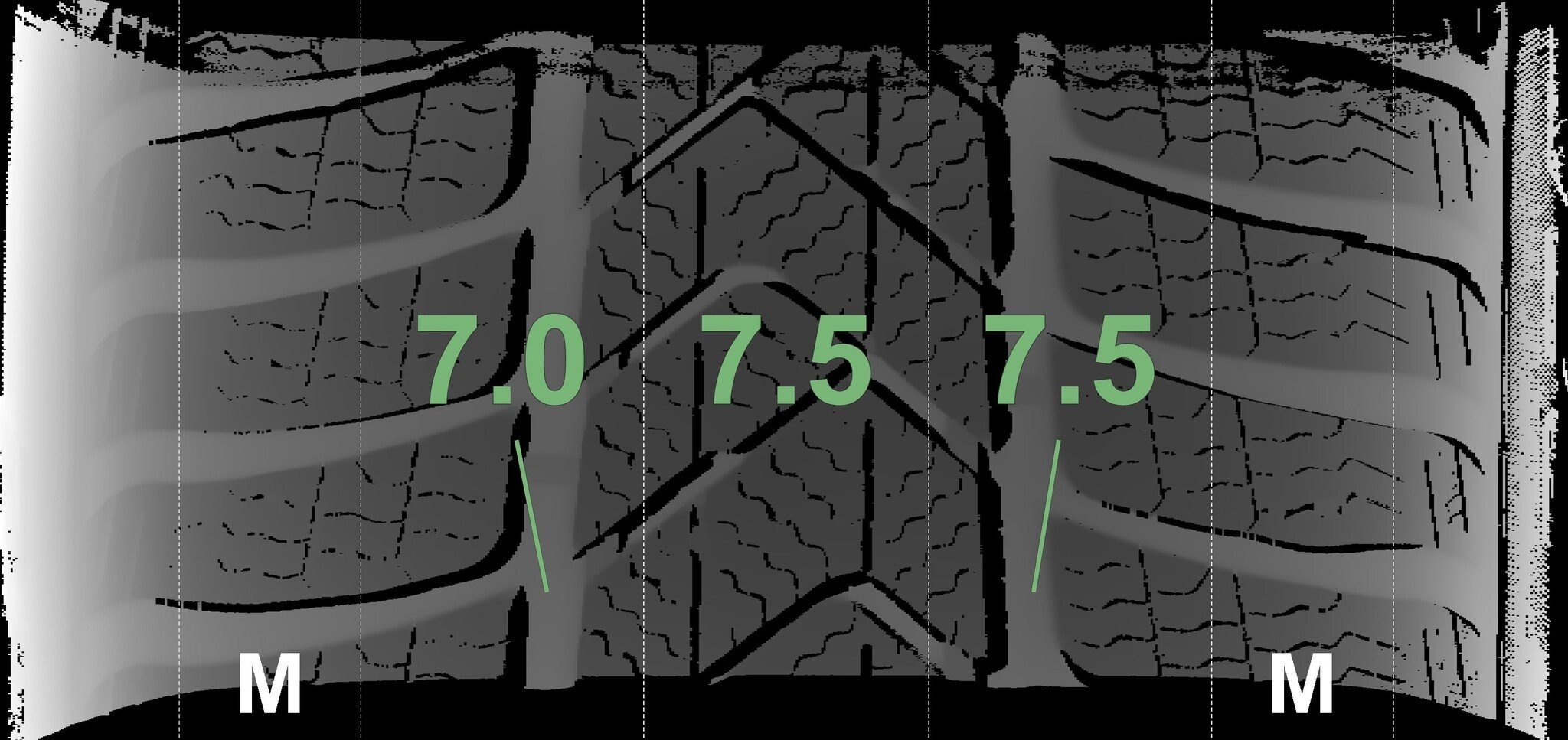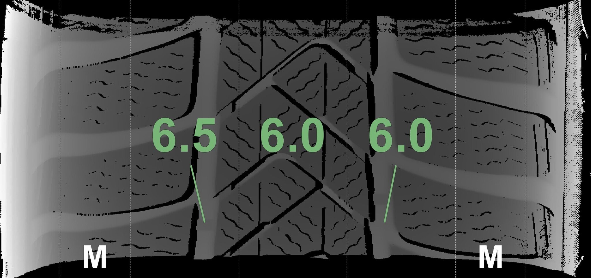 Die gemessenen Profiltiefen und die Details der Felgen sind oben aufgeführt.