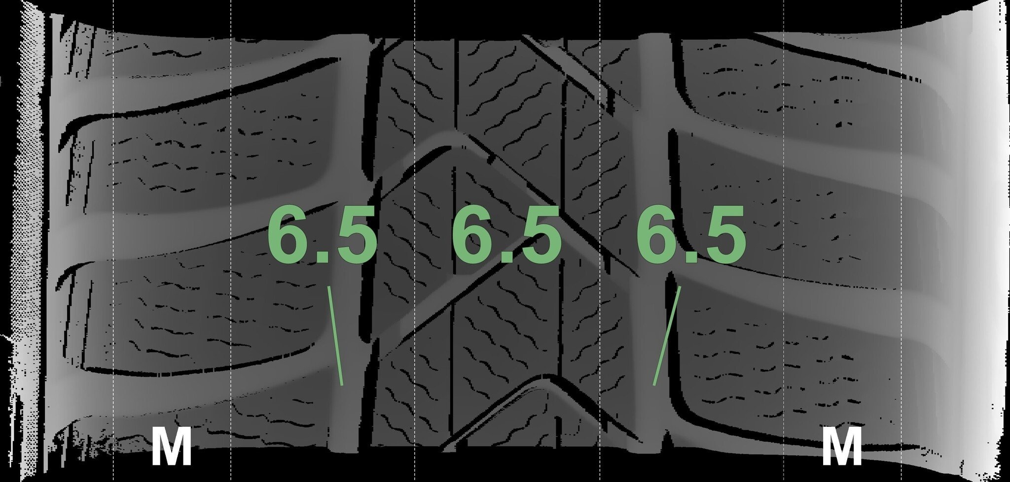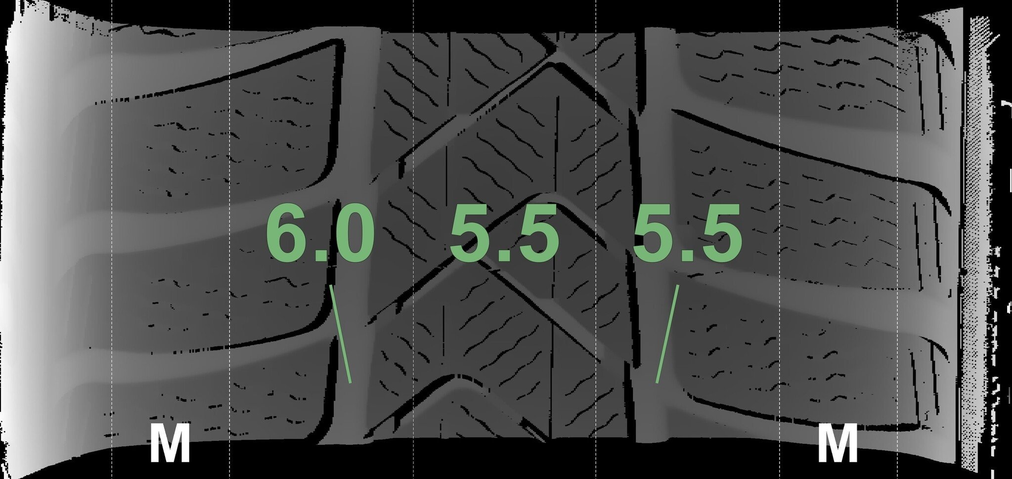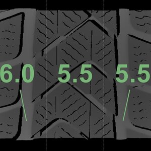 Die gemessenen Profiltiefen und die Details der Felgen sind oben dargestellt.