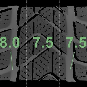 Die gemessenen Profiltiefen und die Details der Felgen sind oben aufgeführt.
