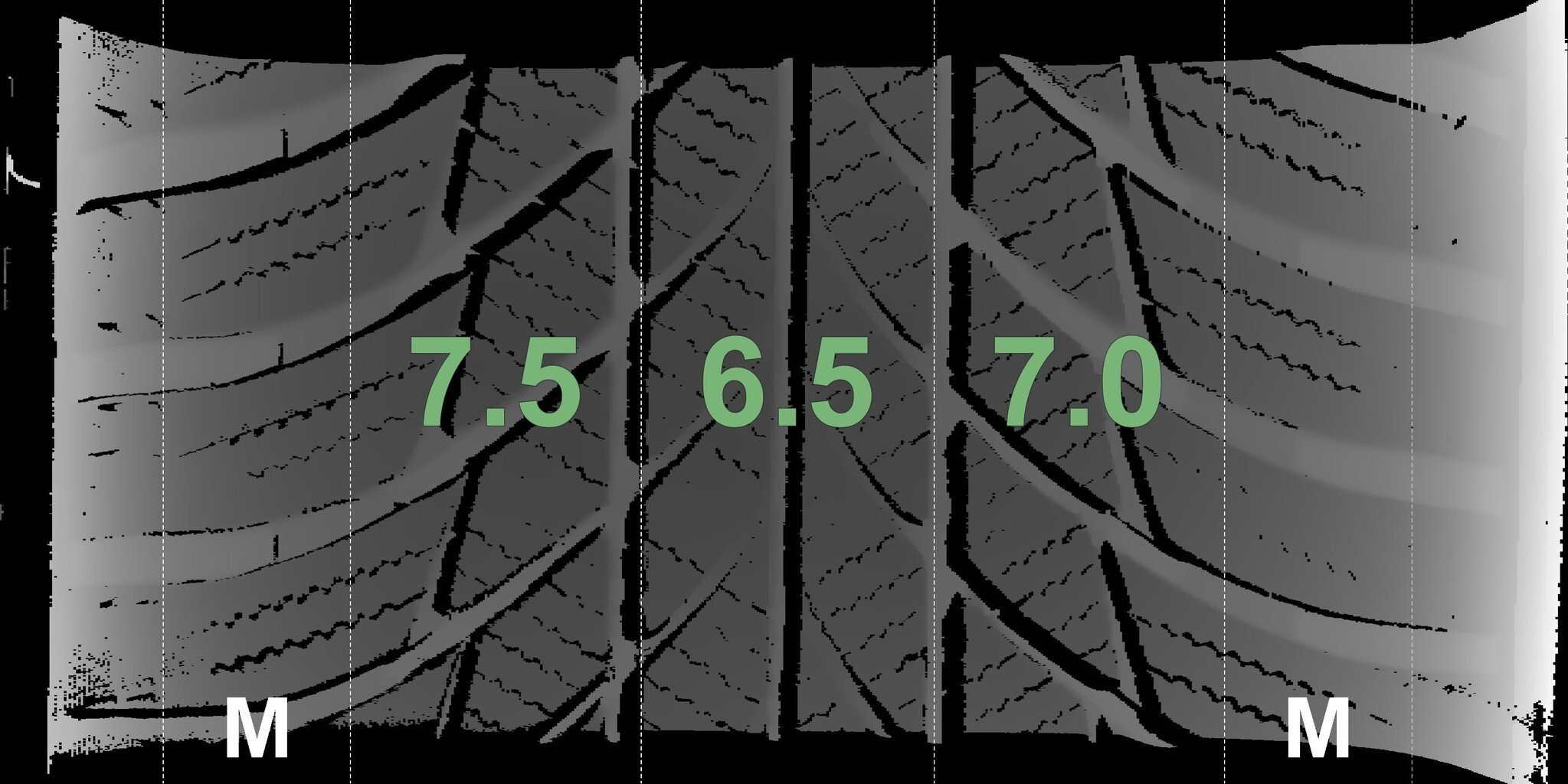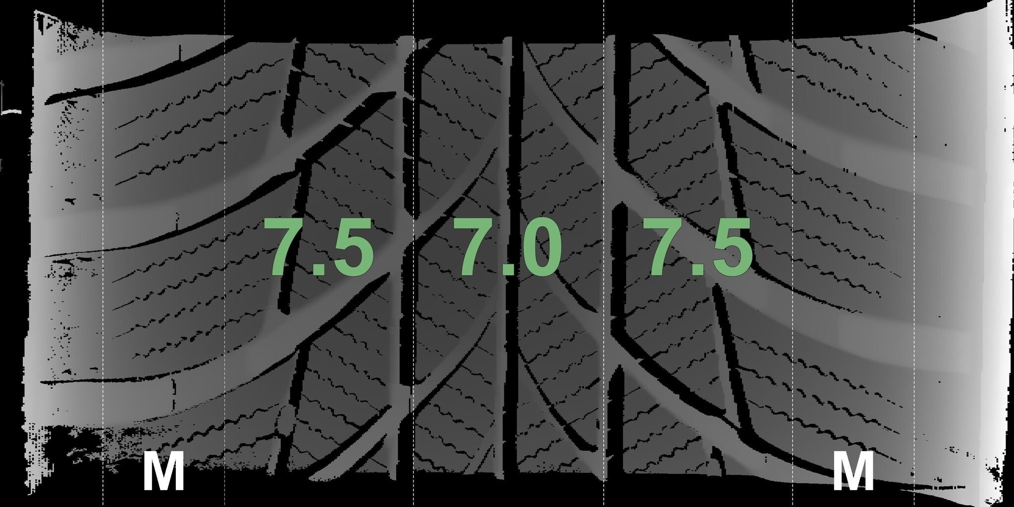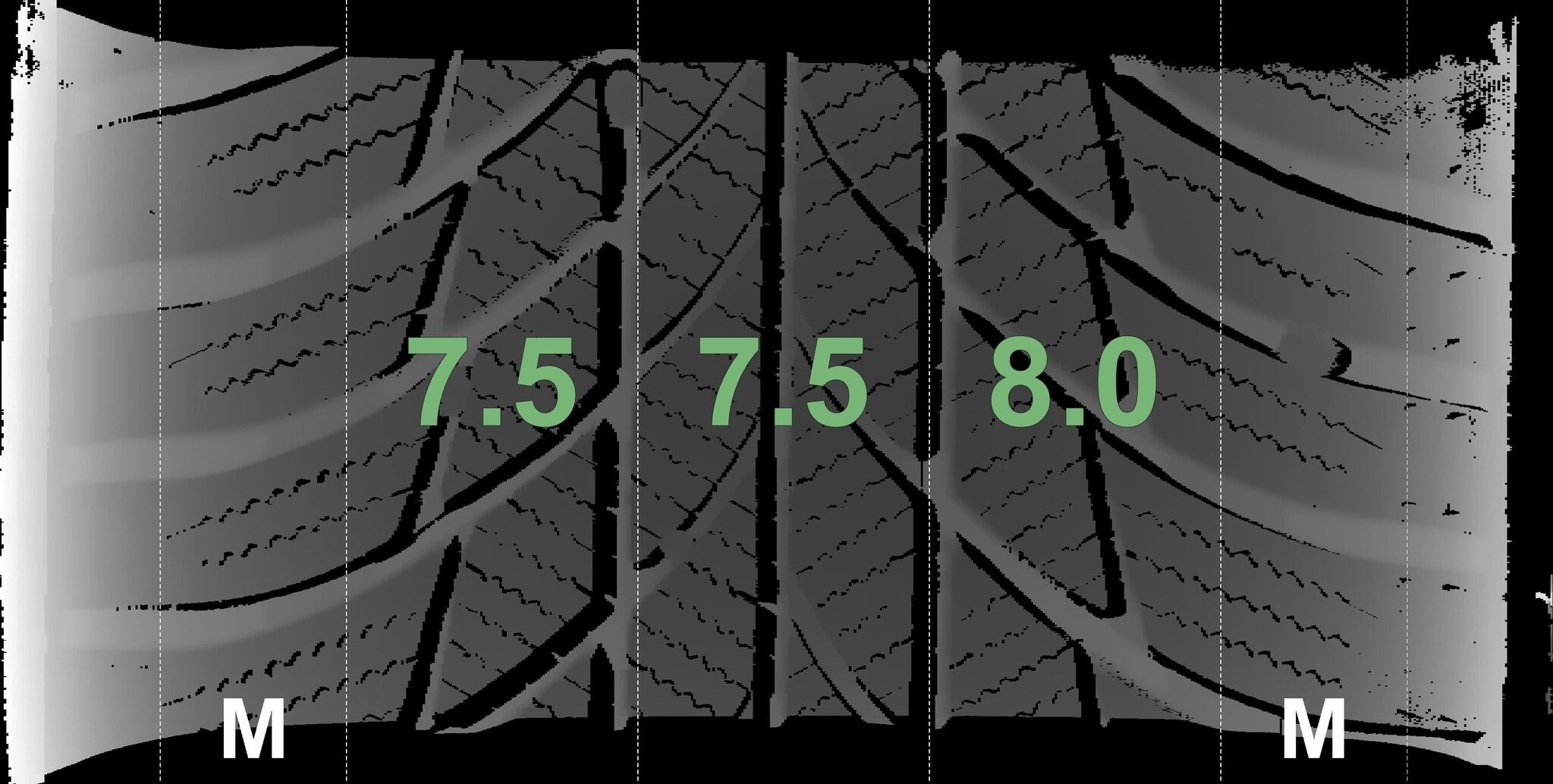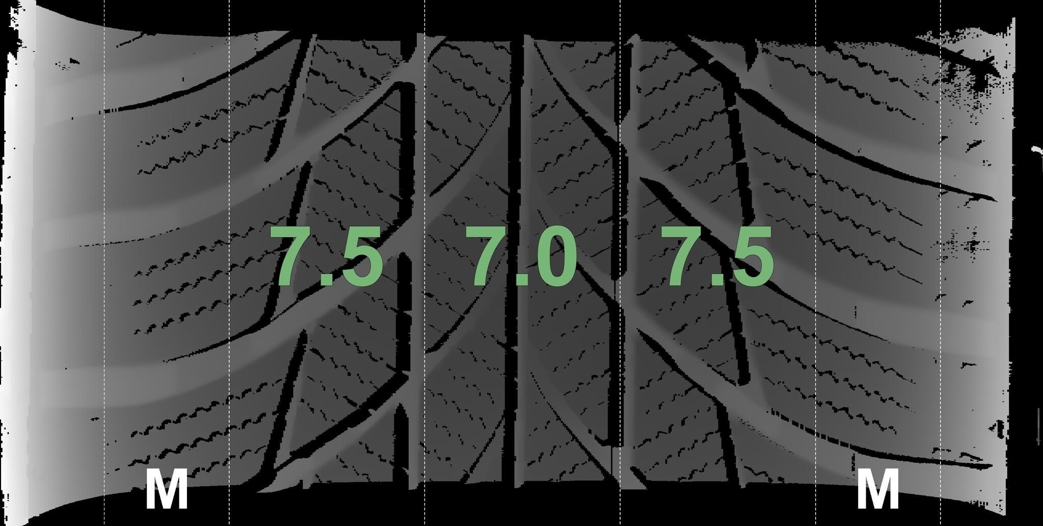 Die gemessenen Profiltiefen und Details der Felgen sind oben abgebildet.
