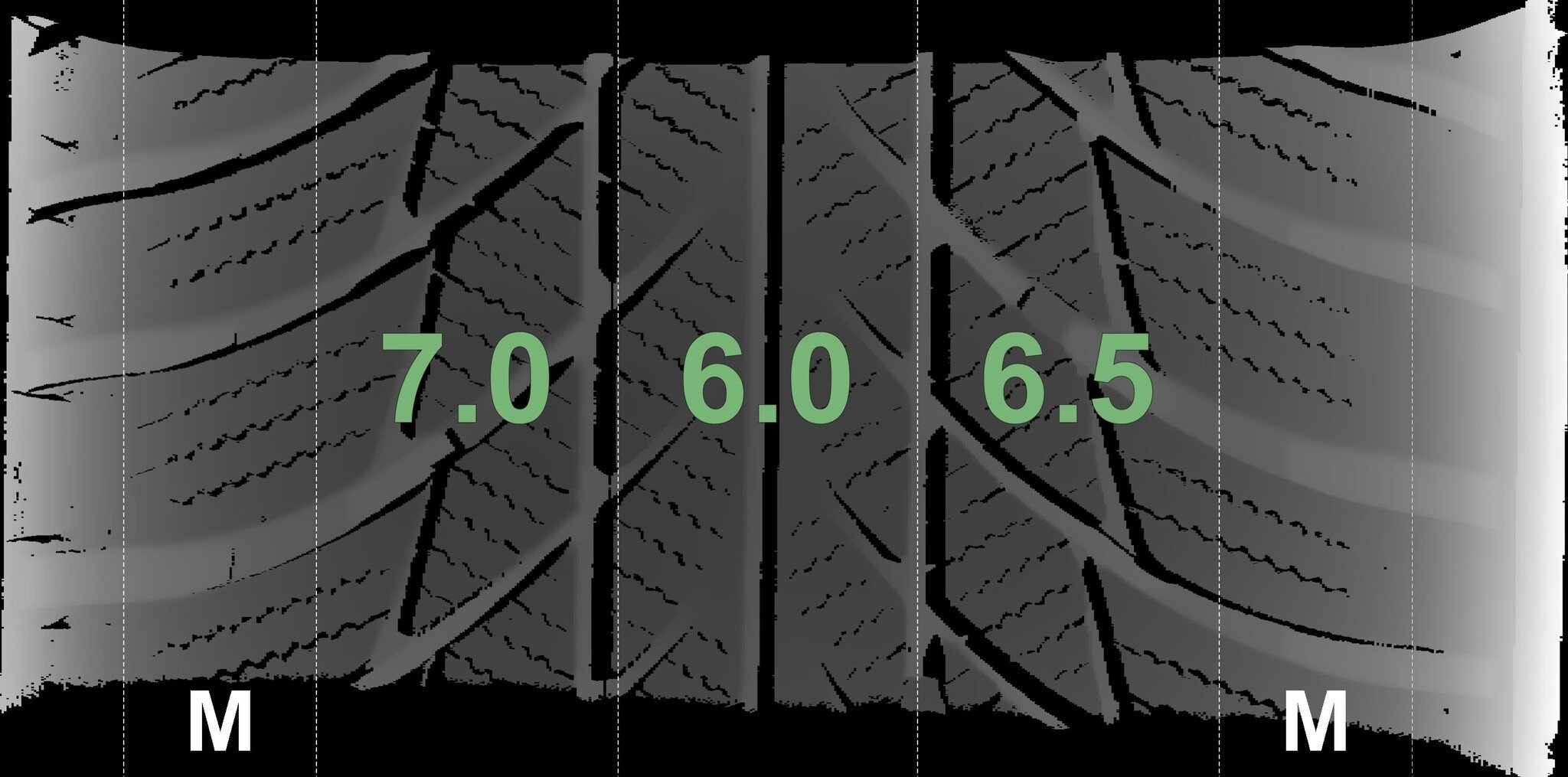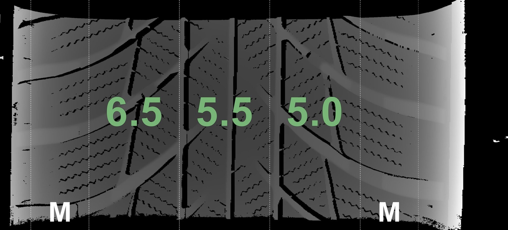 Die gemessenen Profiltiefen und die Details der Felgen sind oben angegeben.