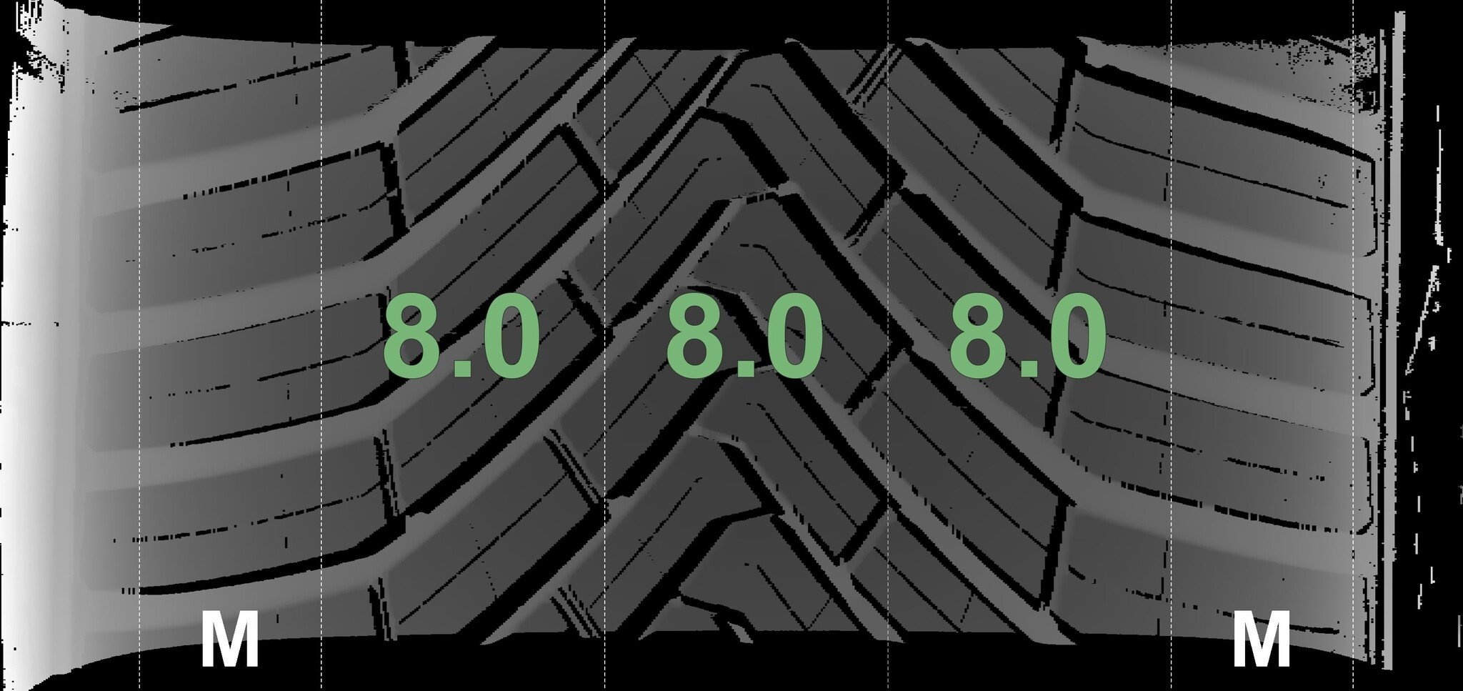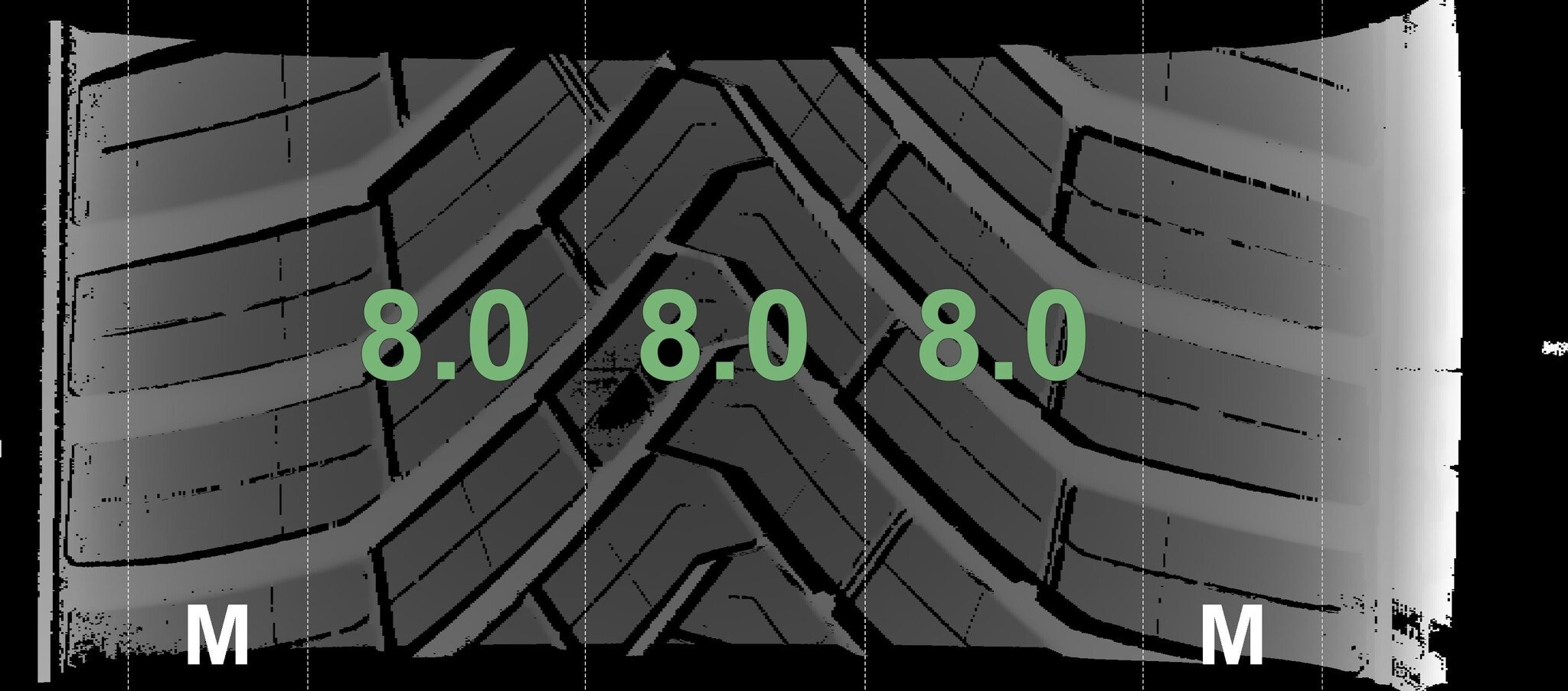 | Zustand | Profiltiefe | DOT | Vorderachse Links | Neu | 8,0 mm | 2223 |