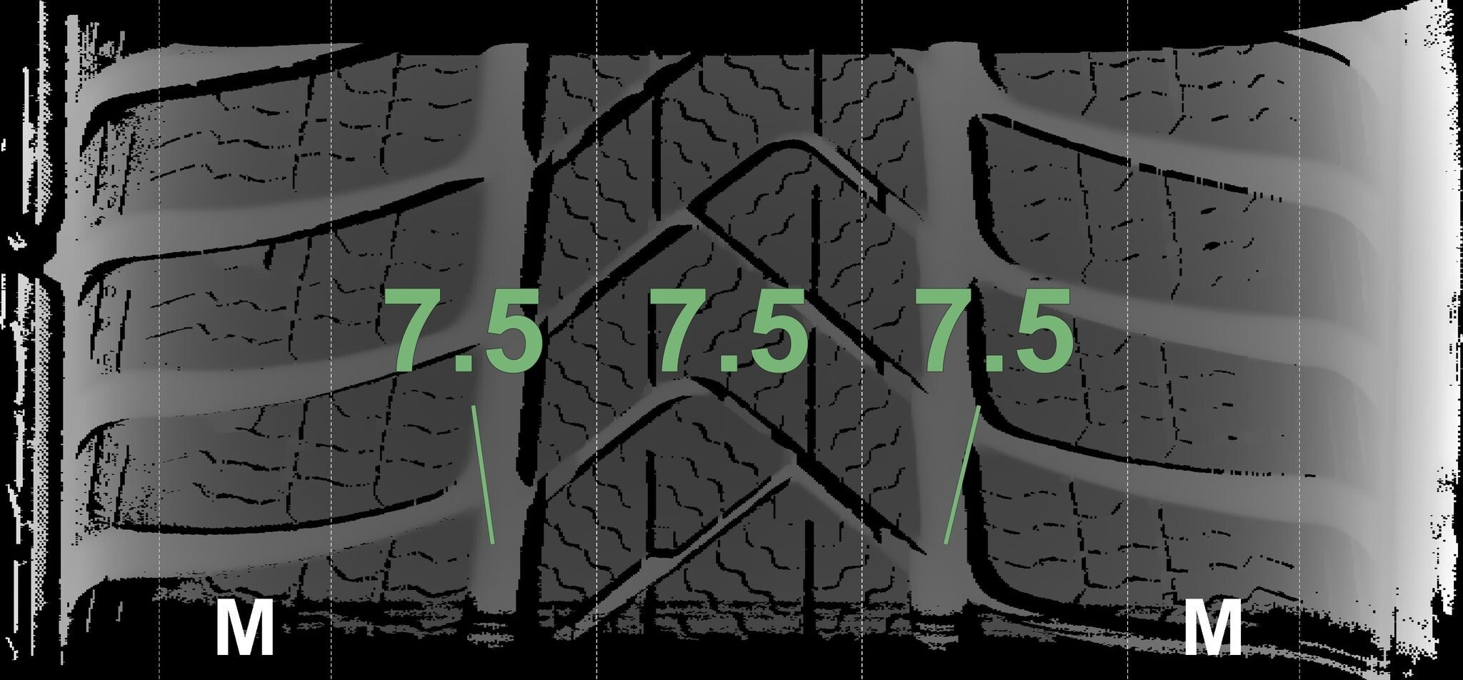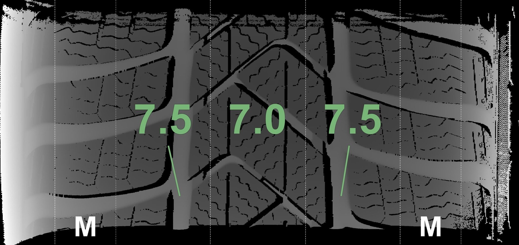 Die gemessenen Profiltiefen und die Details der Felgen sind oben dargestellt.
