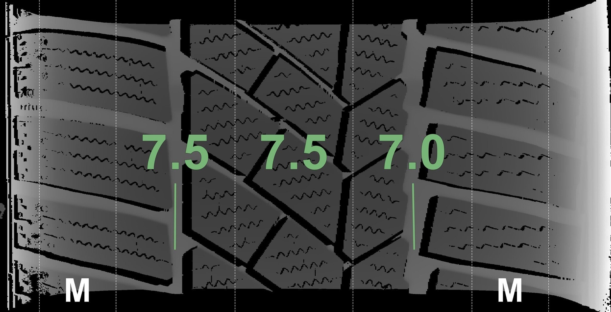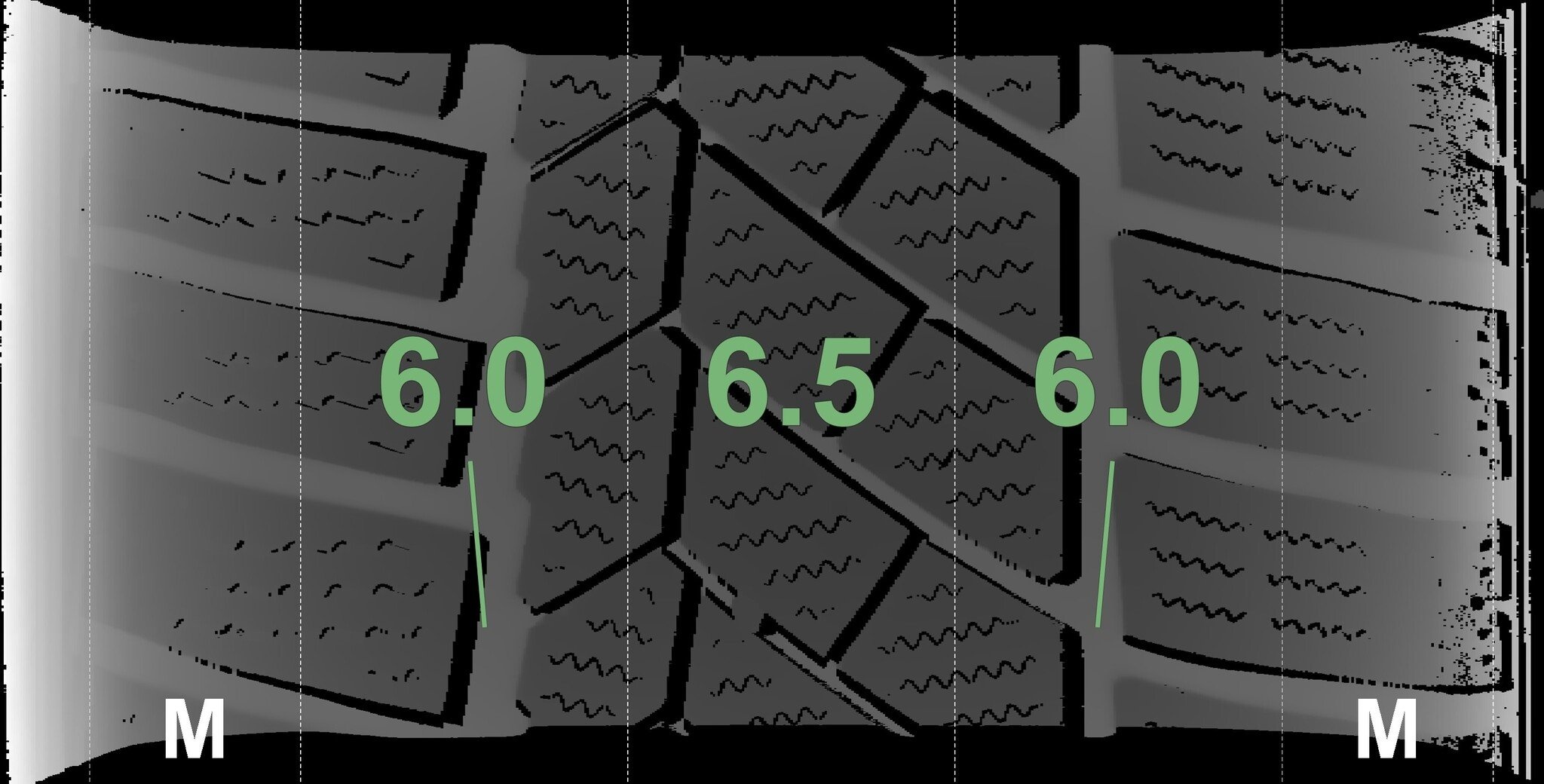 Die gemessenen Profiltiefen und Details zu den Felgen sind oben abgebildet.