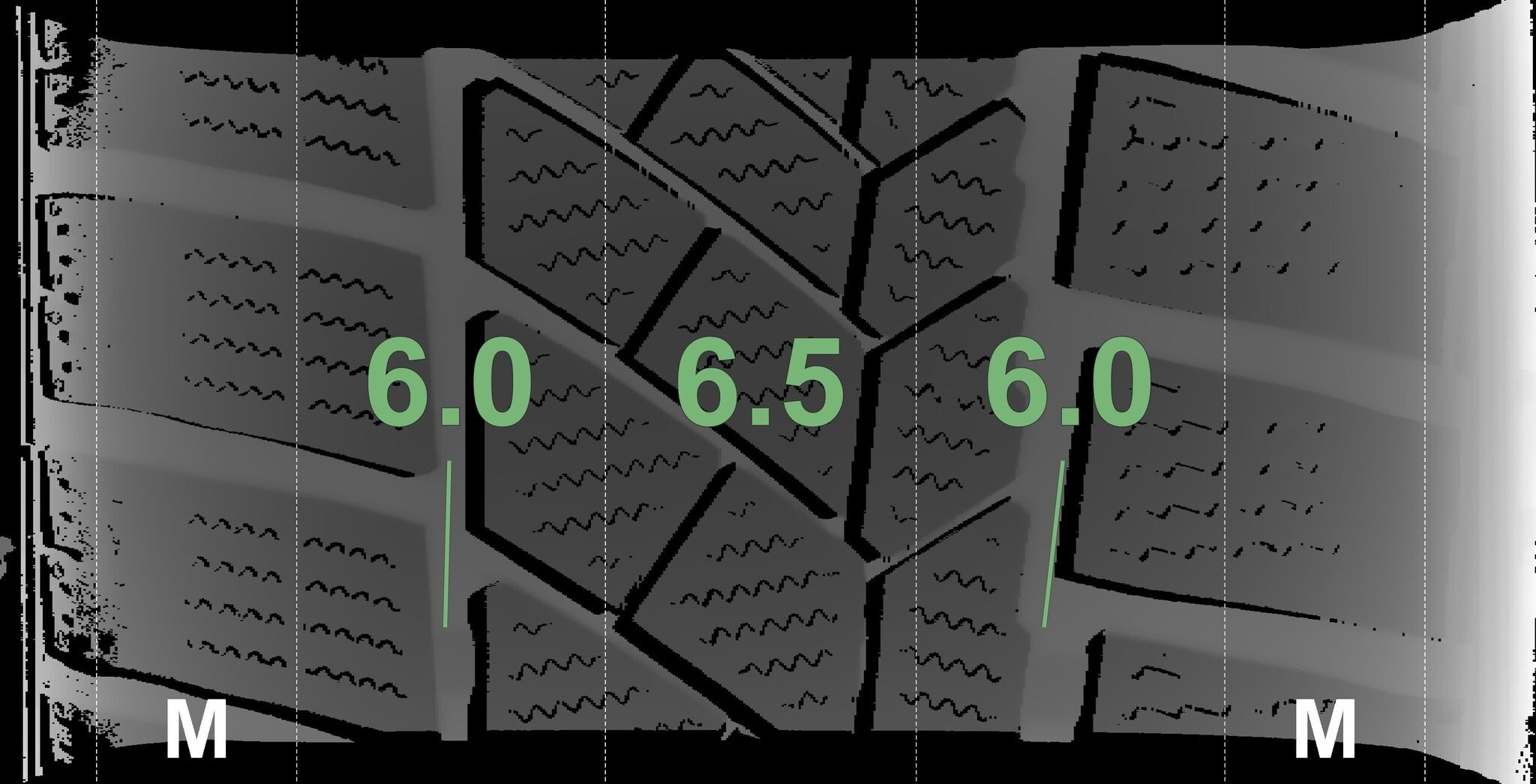 | Zustand | Profiltiefe | DOT | Vorderachse Links | Gebraucht | 6,0 mm | 4319 |