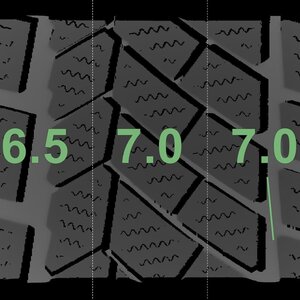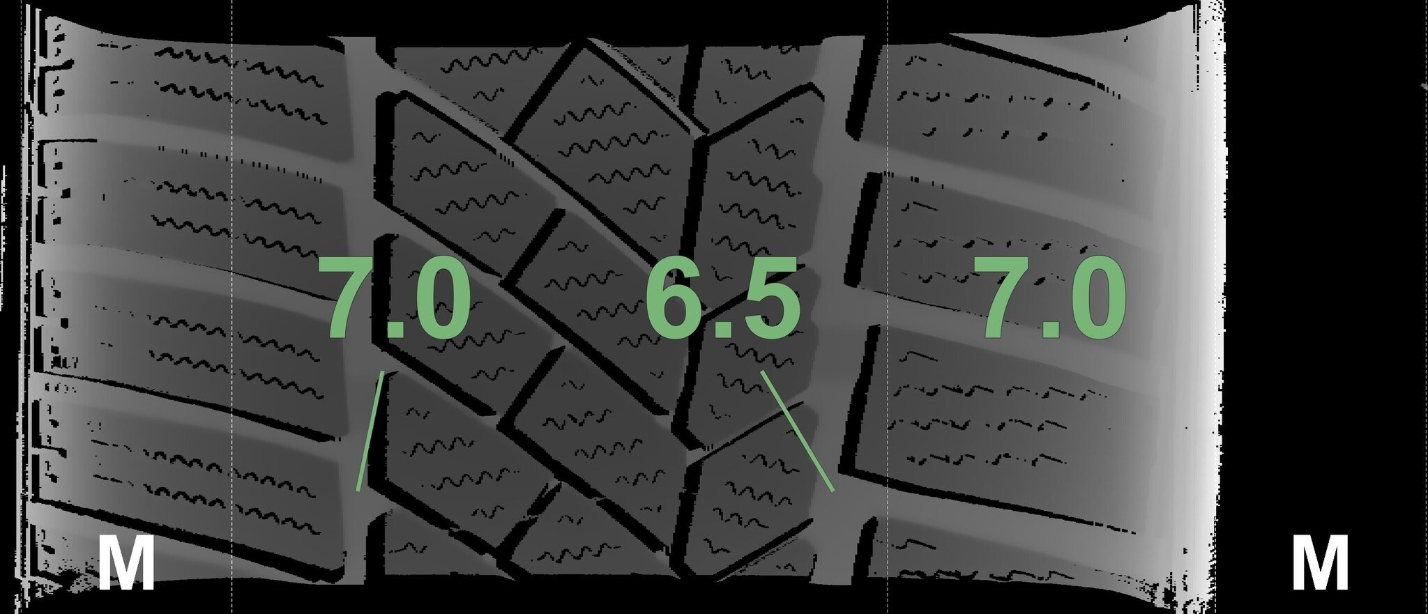 Die gemessenen Profiltiefen und die Details der Felgen sind oben dargestellt.