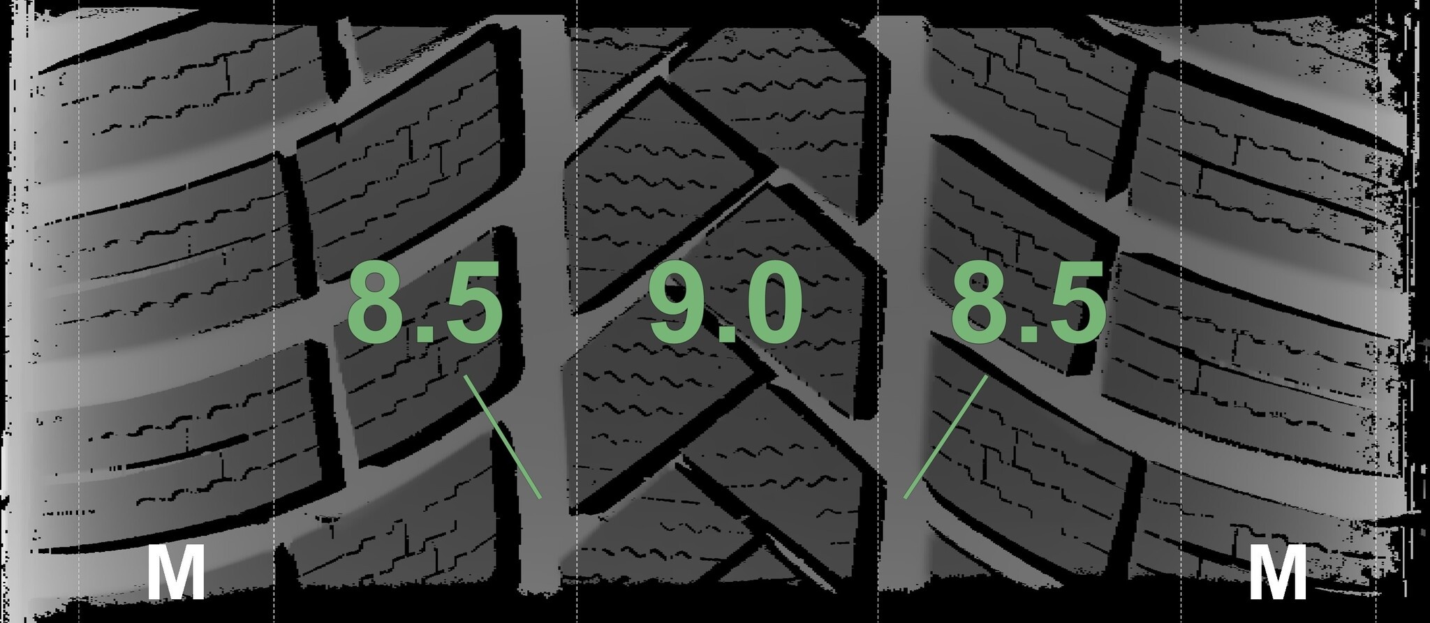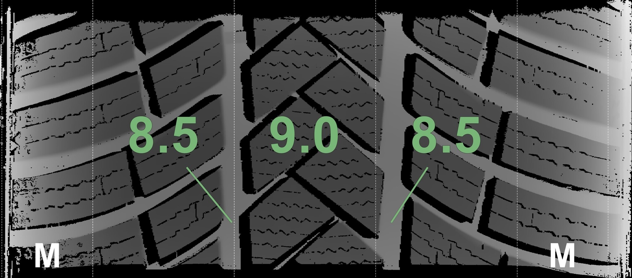 Die gemessenen Profiltiefen und Details zu den Felgen sind oben abgebildet.