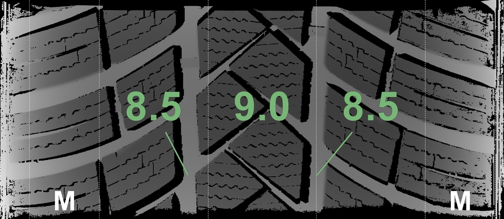 Zustand | Profiltiefe | DOT | Vorderachse Rechts | Neu | 8,5 mm | 4421 |