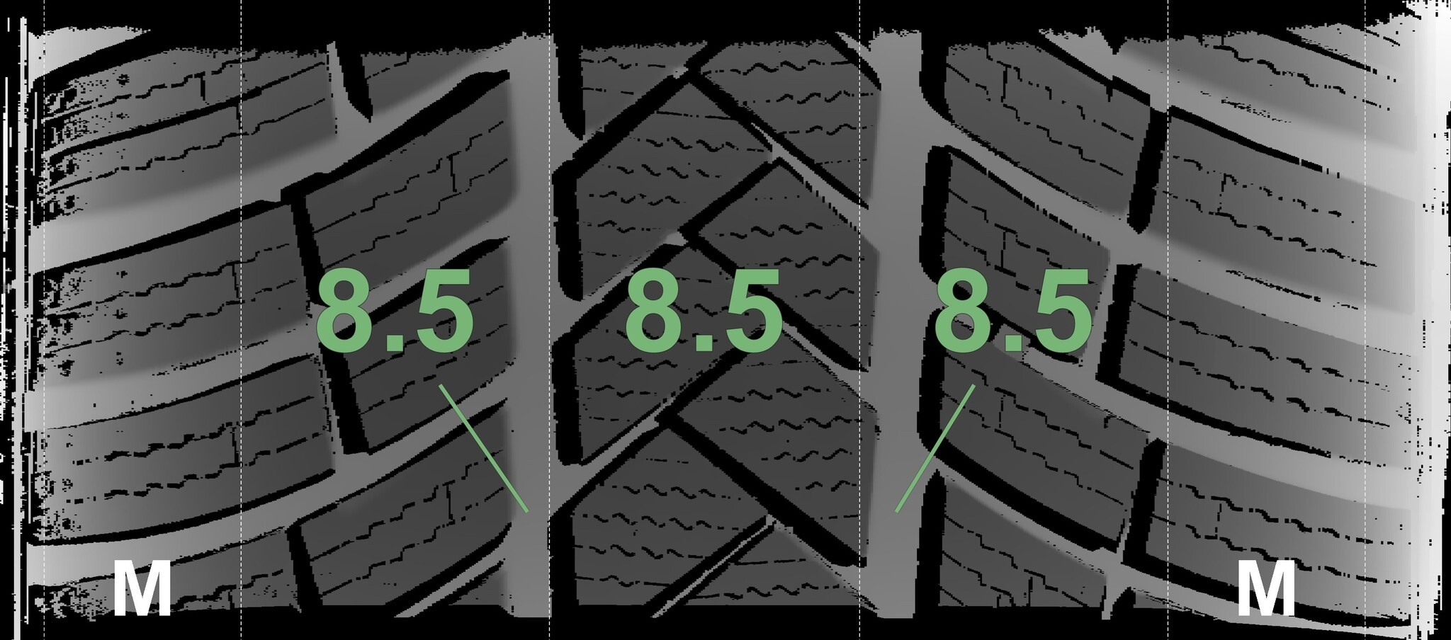 Zustand | Profiltiefe | DOT | Vorderachse Links | Neu | 8,5 mm | 4421 |