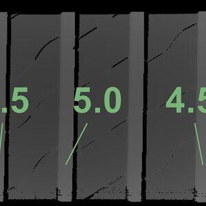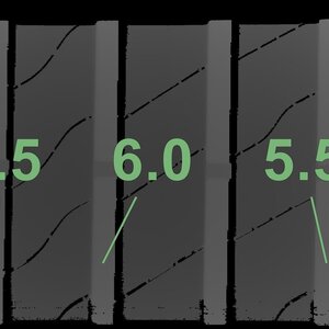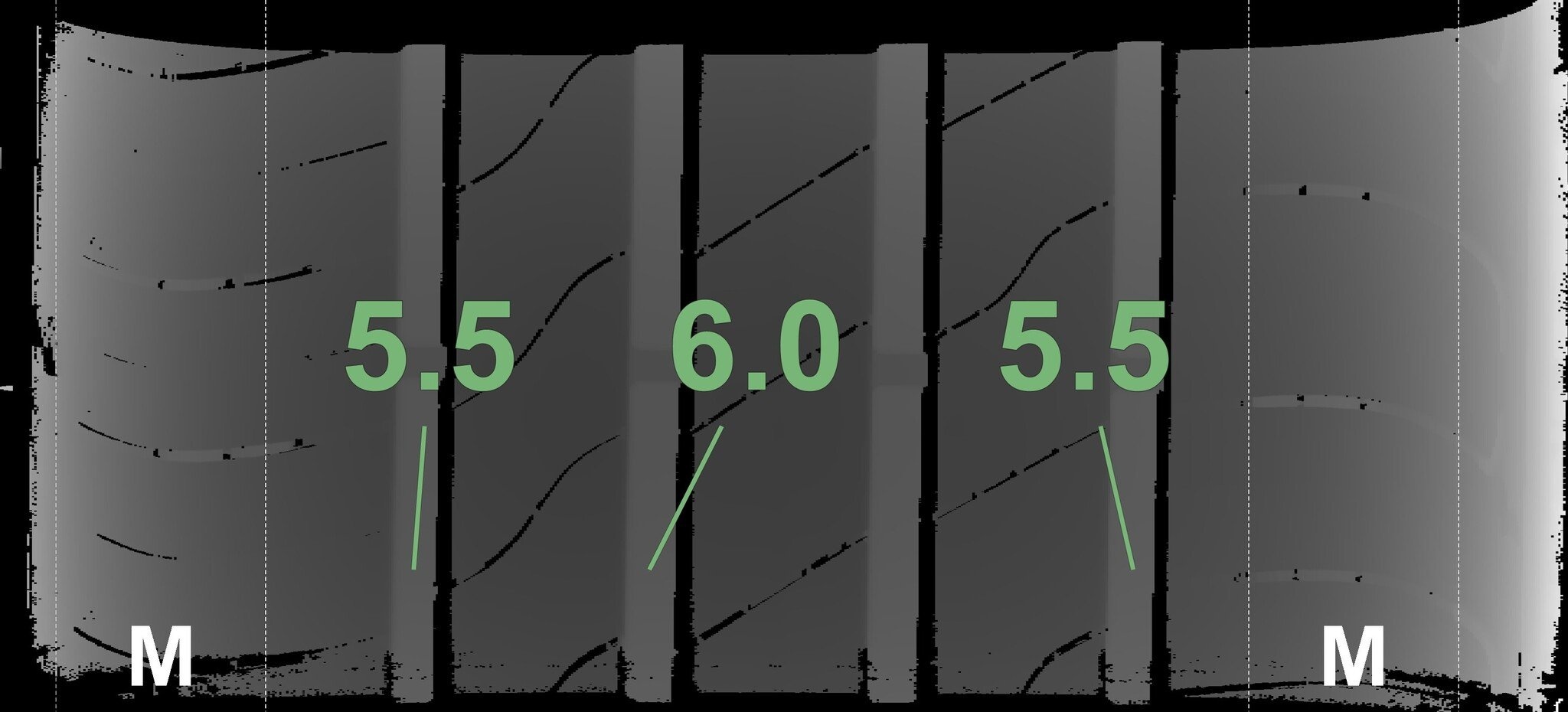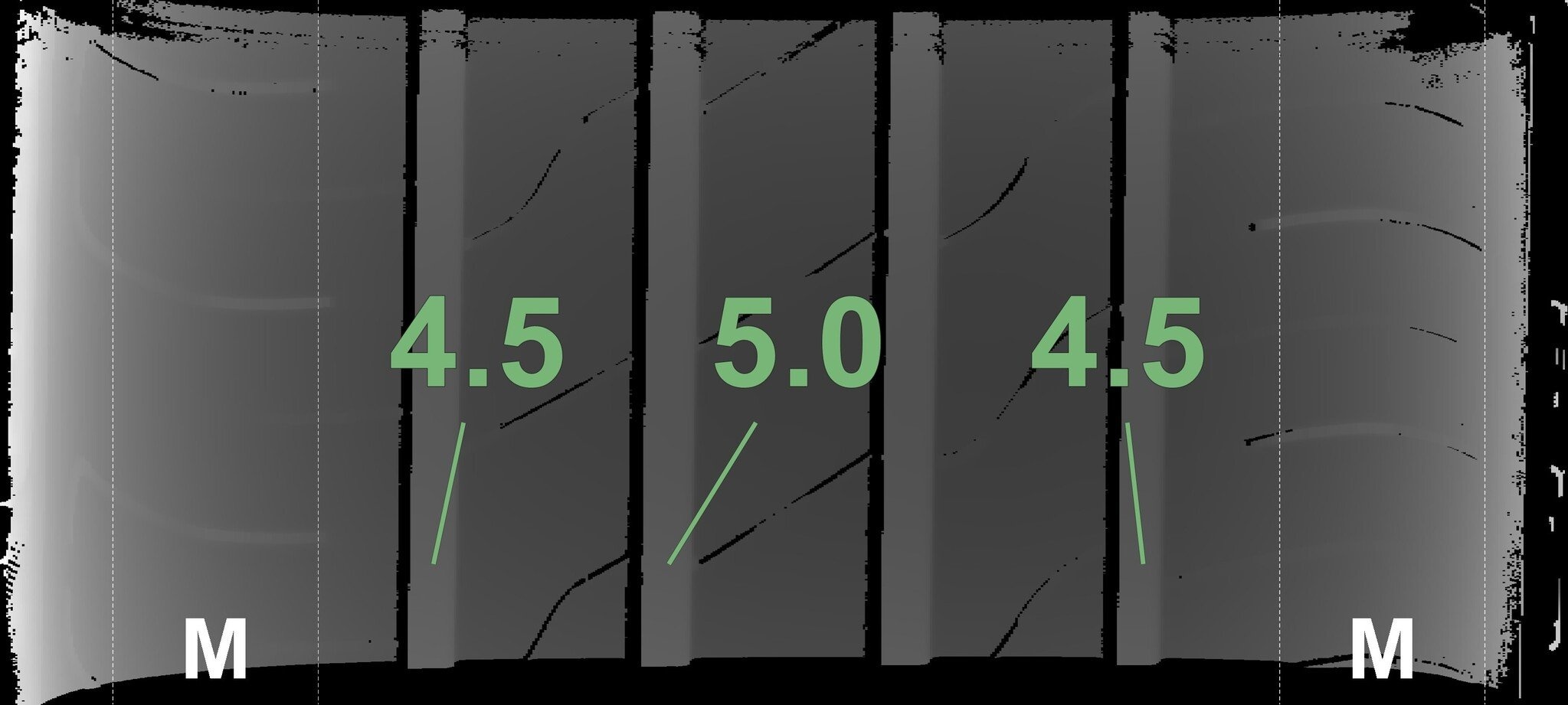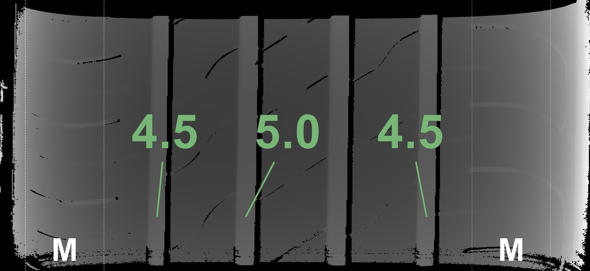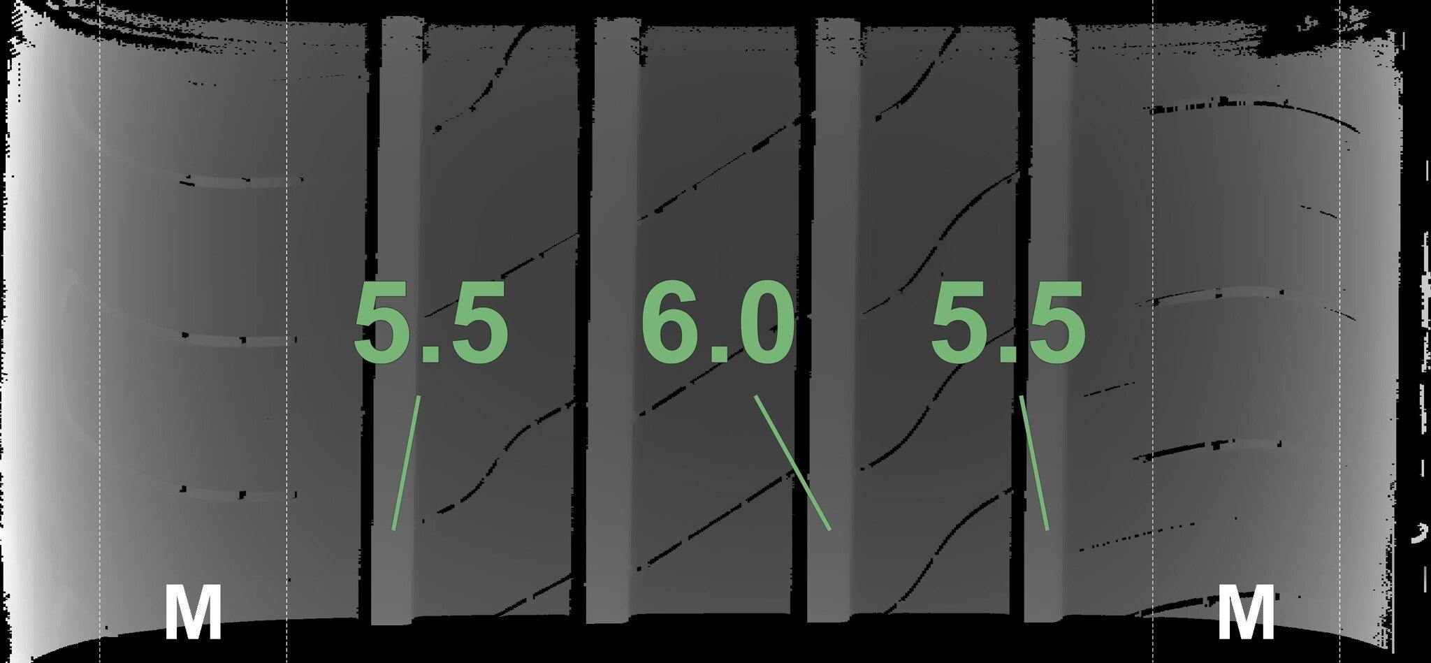 Die gemessenen Profiltiefen und die Details der Felgen sind oben dargestellt.
