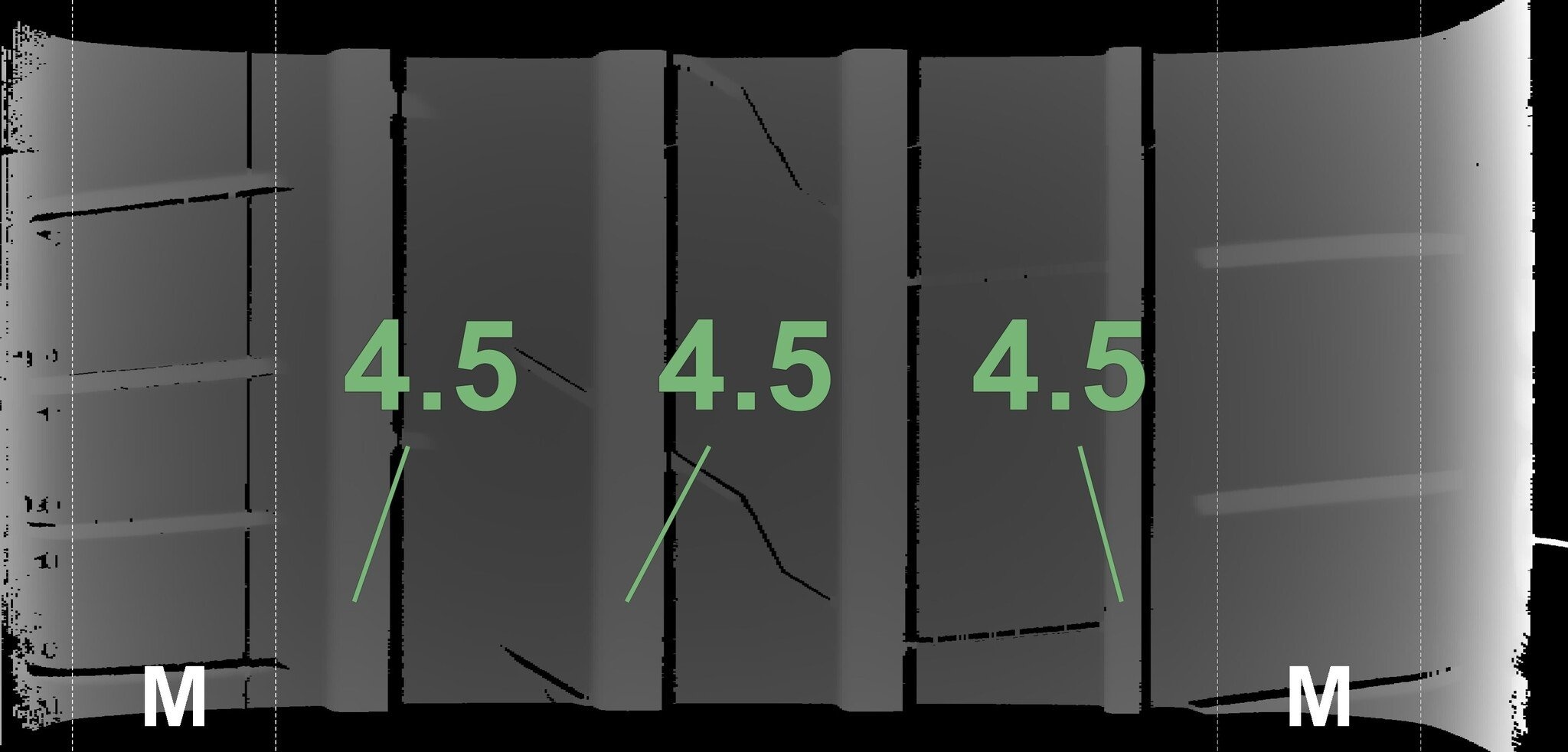| Zustand | Profiltiefe | DOT | Vorderachse Links | Gebraucht | 5,0 mm | 4524 |
