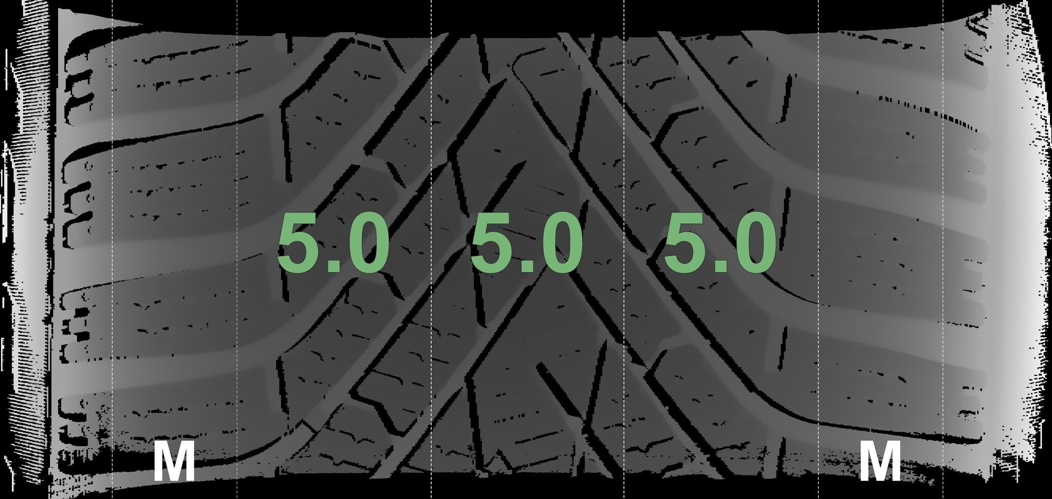 Die gemessenen Profiltiefen und die Details der Felgen sind oben angegeben.