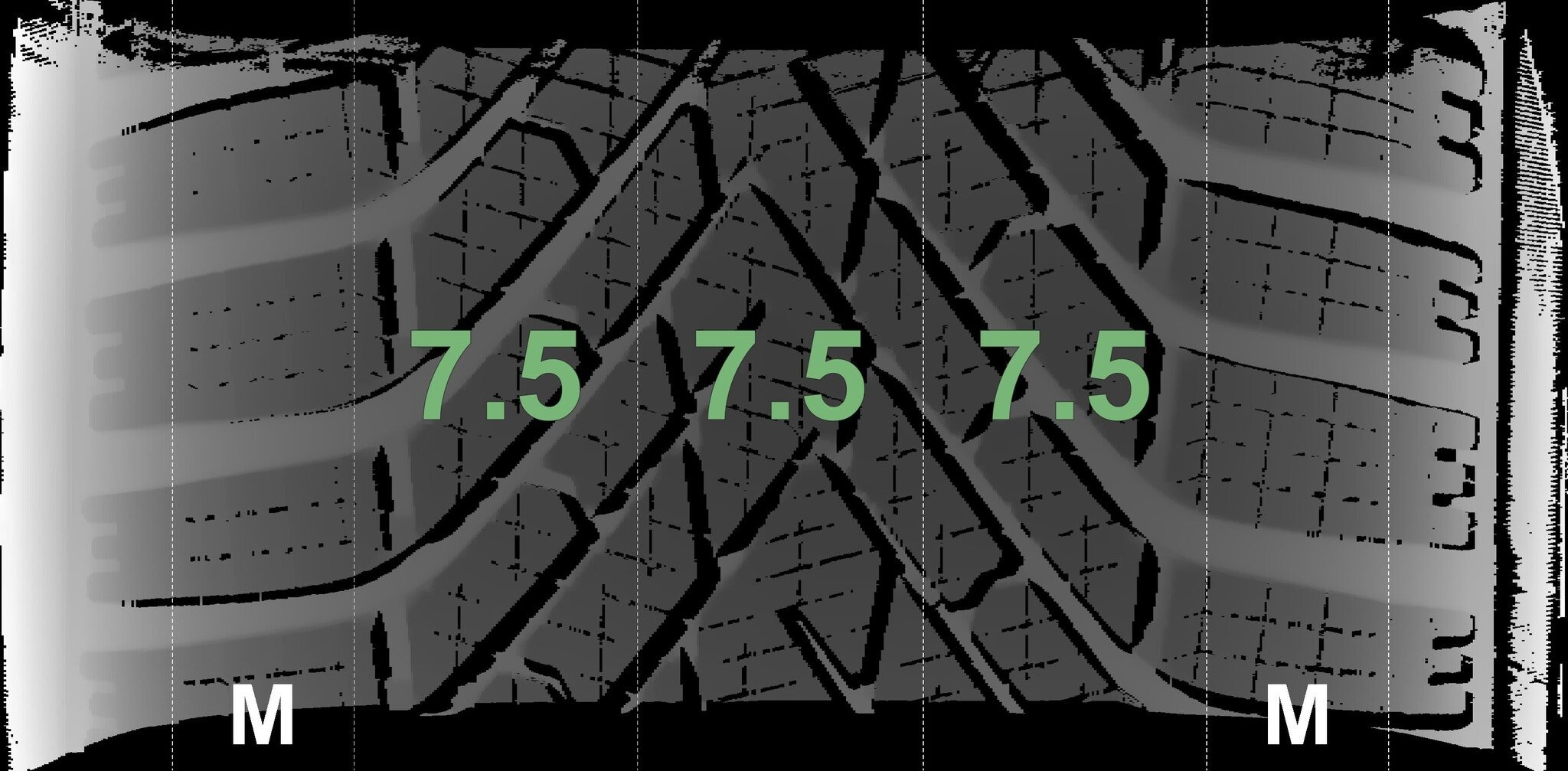 | Zustand | Profiltiefe | DOT | Vorderachse Links | Neu | 7.5 mm | 4424 |