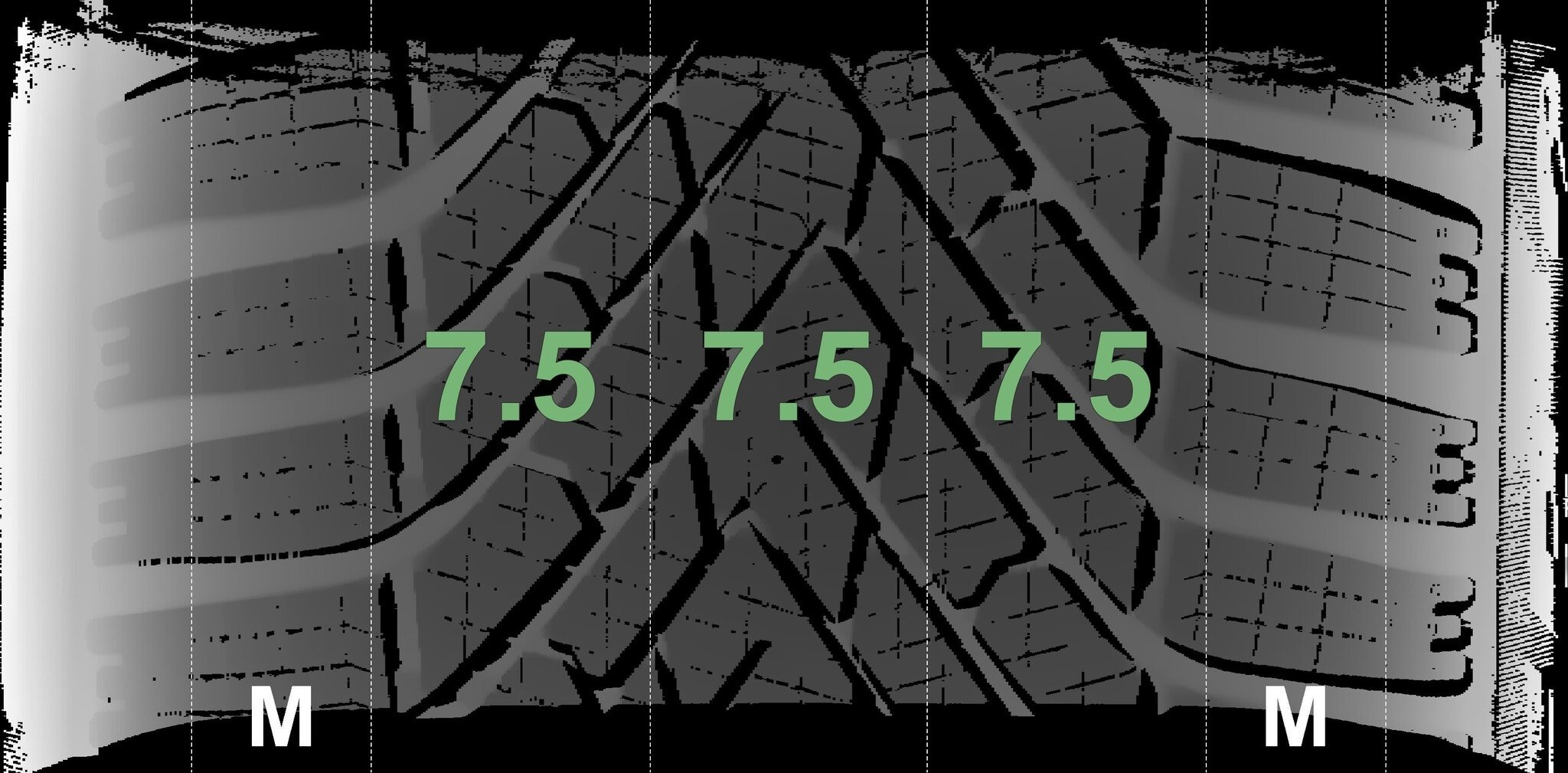 | Zustand | Profiltiefe | DOT | Vorderachse Links | Demo-Noppen noch sichtbar | 7.5 mm | 2824 |