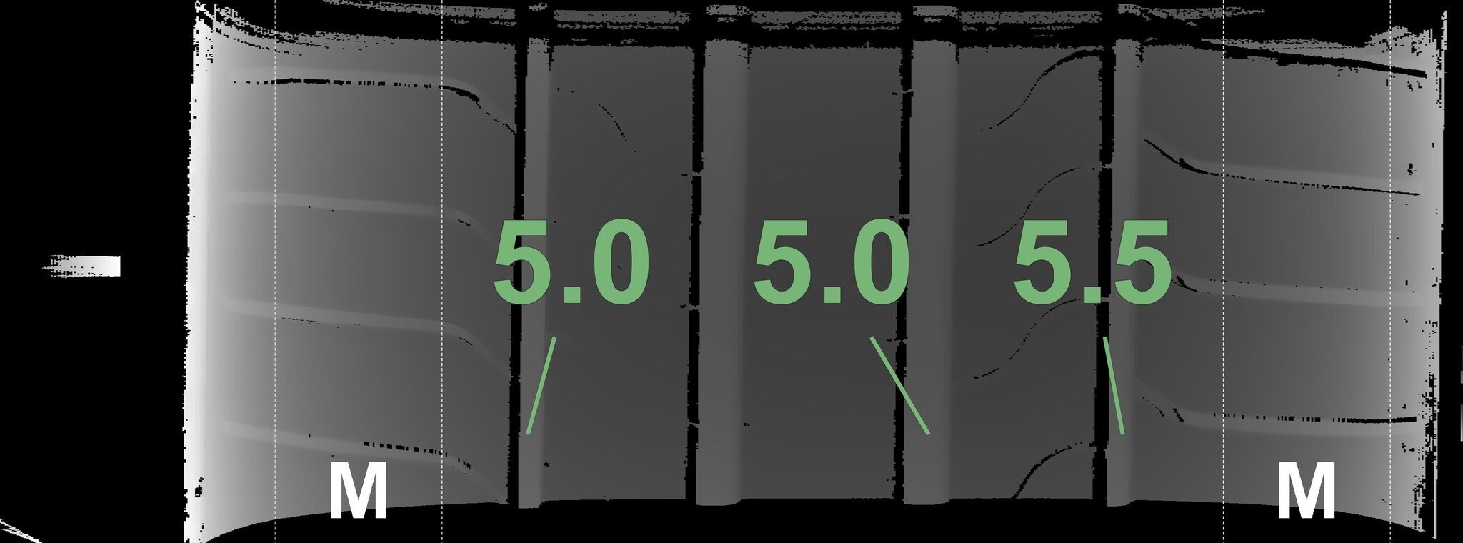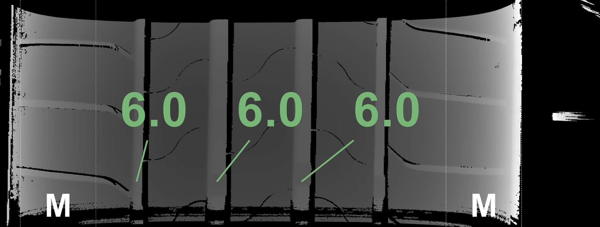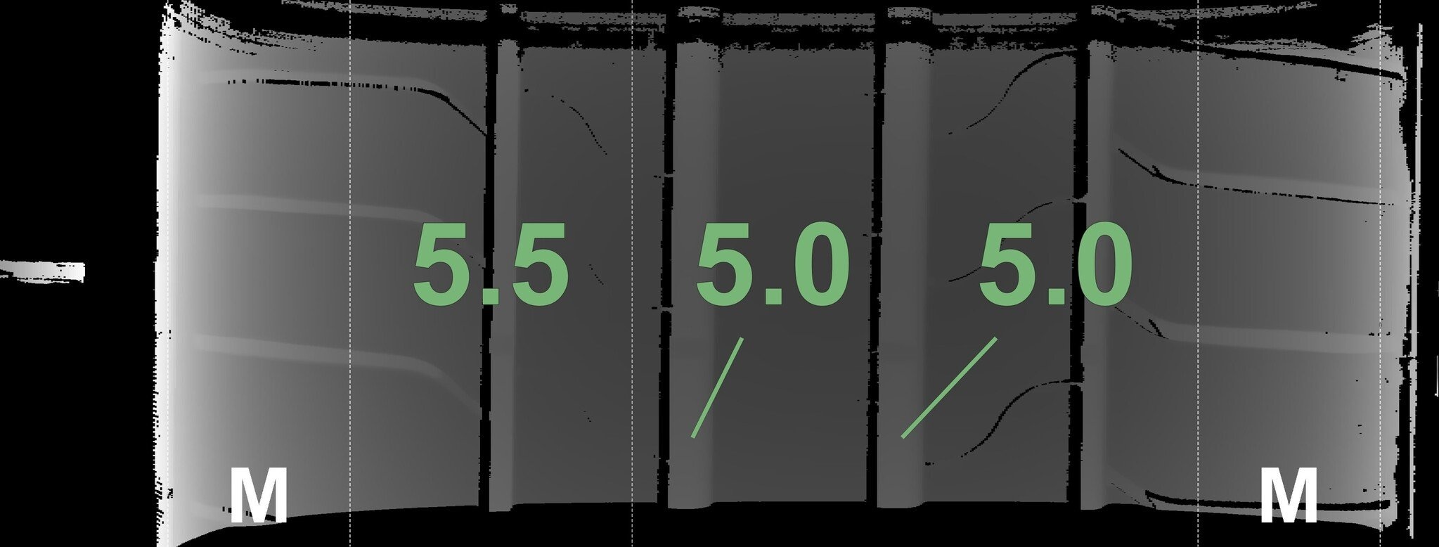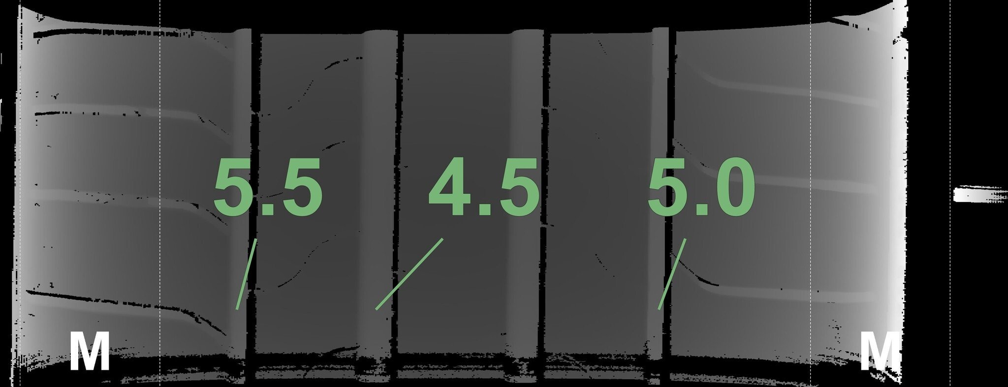 Die gemessenen Profiltiefen und die Details der Felgen sind oben angegeben.