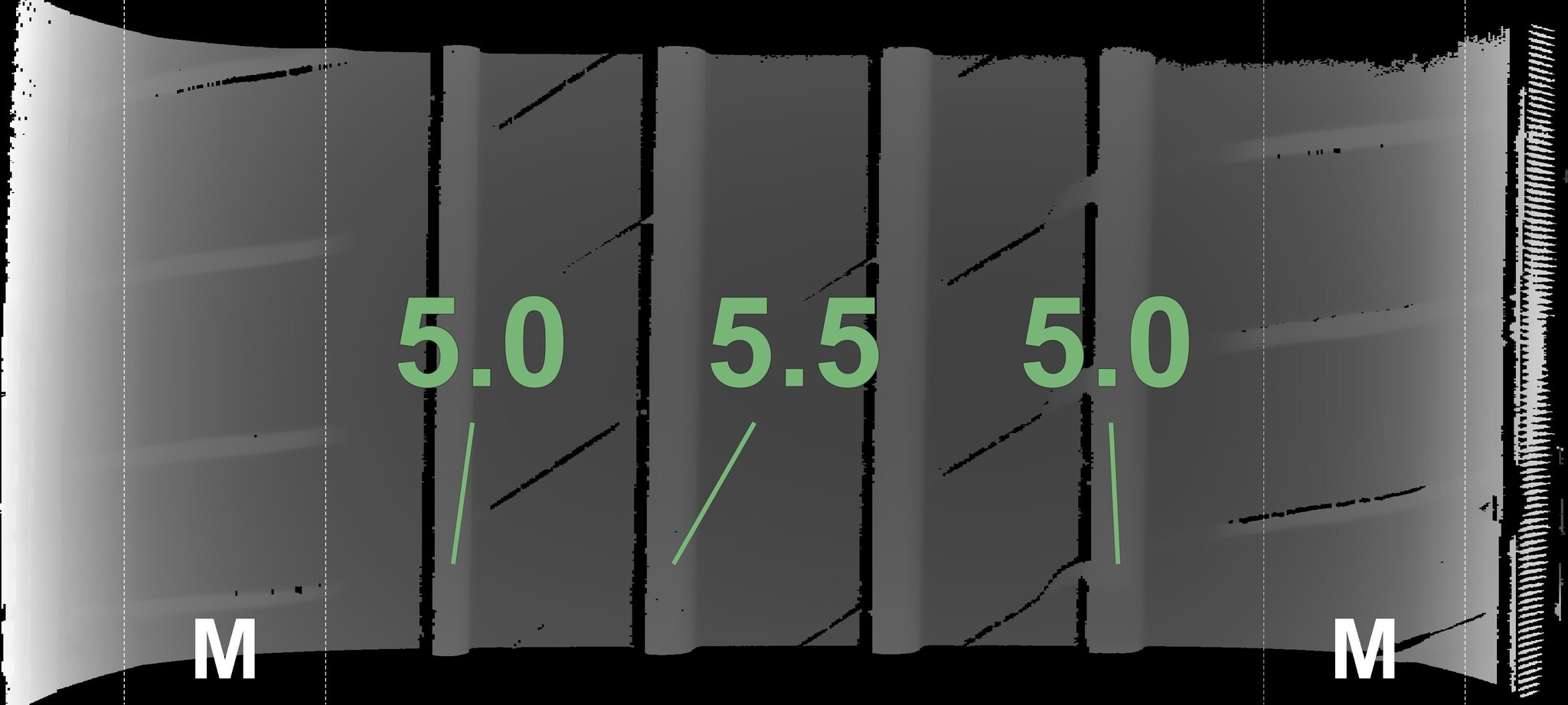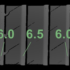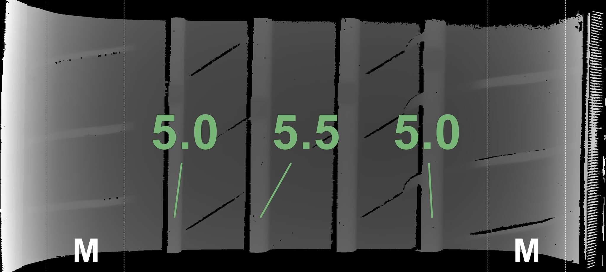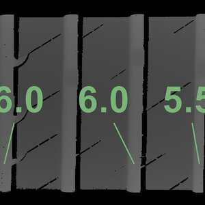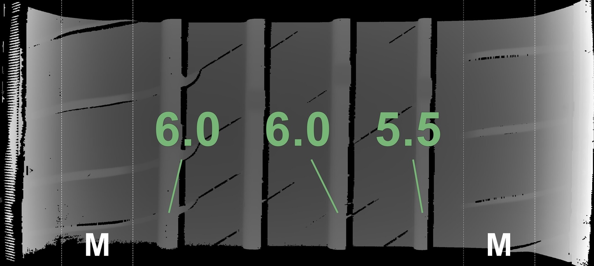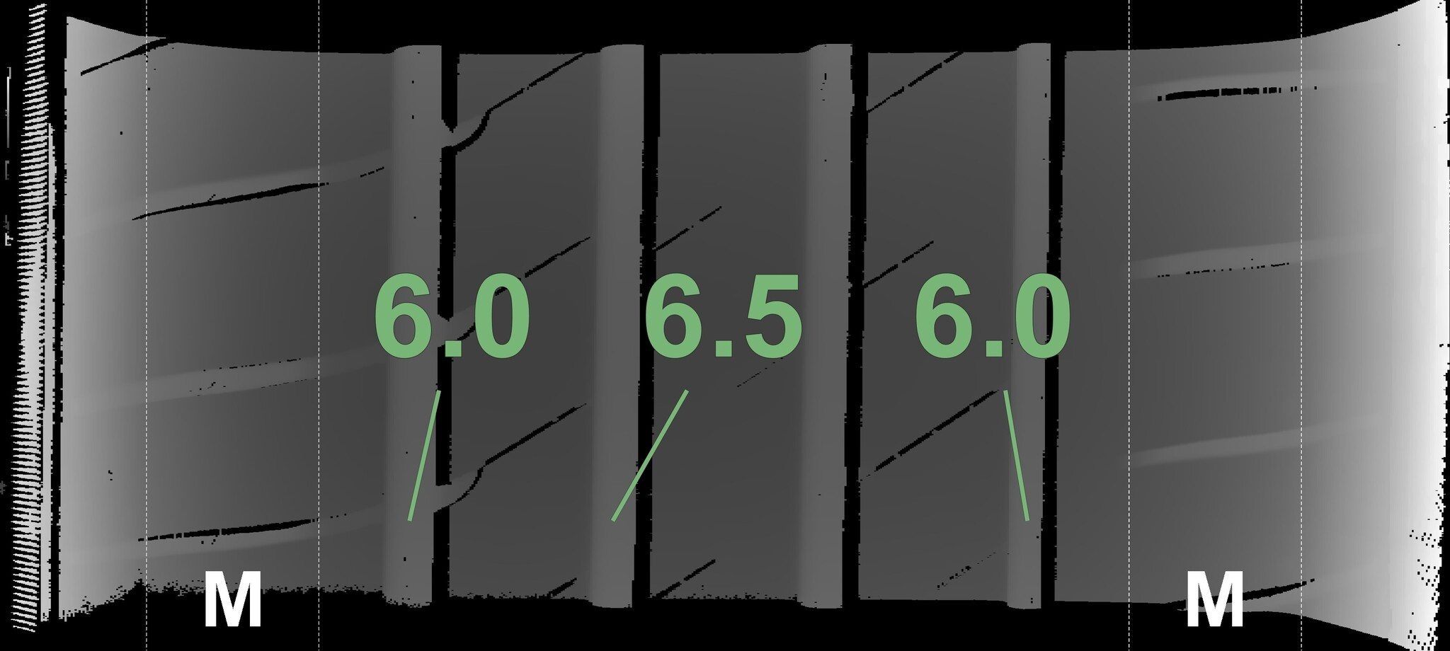 Die gemessenen Profiltiefen und Details der Felgen sind oben dargestellt.