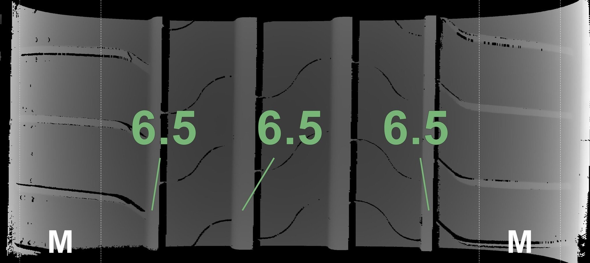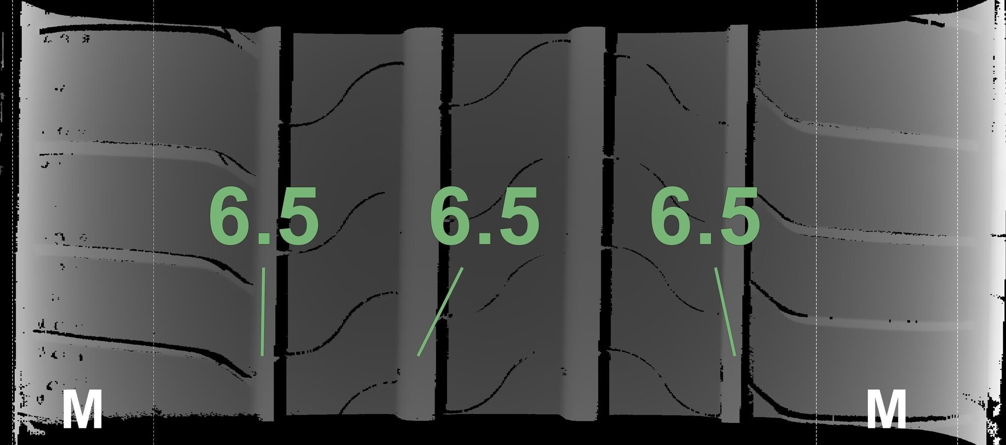 | Zustand | Profiltiefe | DOT | Vorderachse Links | Neu | 6,5 mm | 4624 |