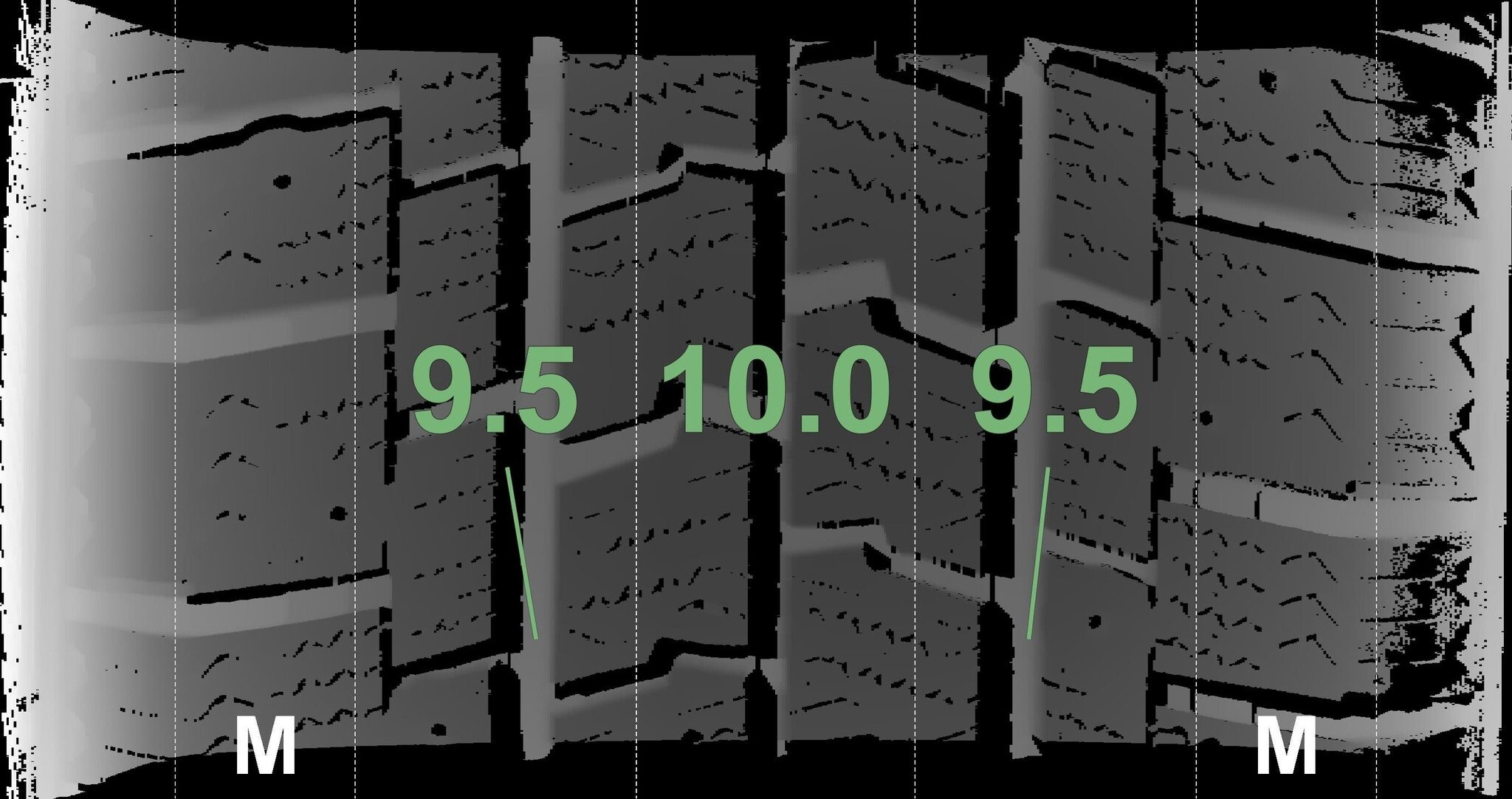 | Zustand | Profiltiefe | DOT | Vorderachse Links | Neu | 9,5 mm | 0919 |