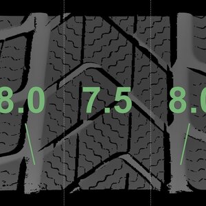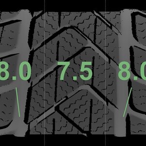 Die gemessenen Profiltiefen und andere Merkmale sind oben abgebildet.