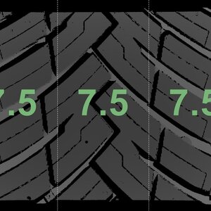 | Zustand | Profiltiefe | DOT | Vorderachse Rechts | Neu | 7,5 mm | 4423 |