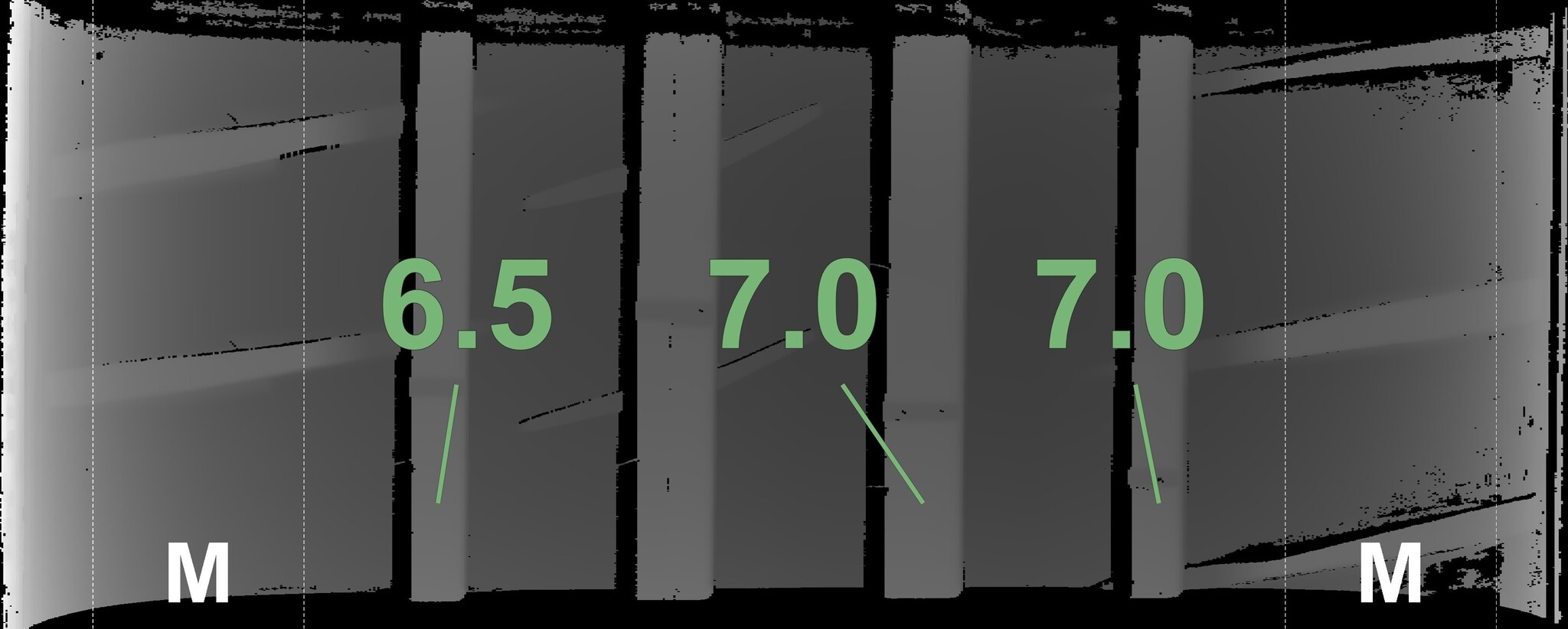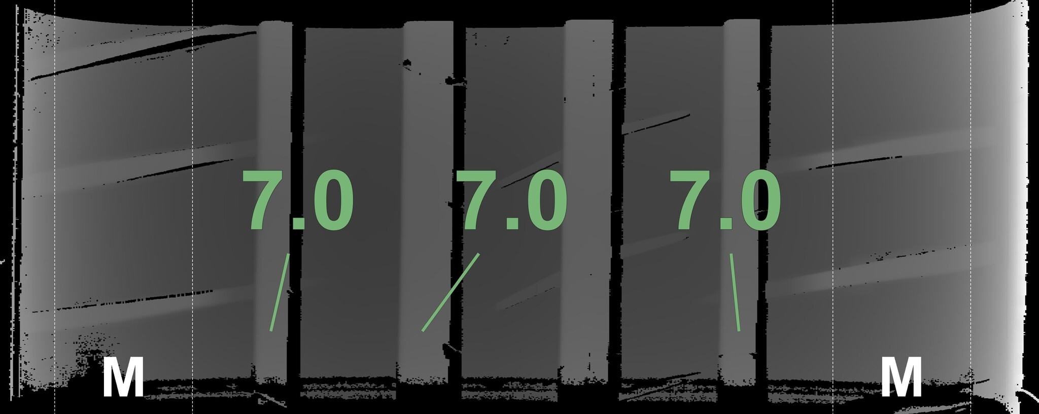 | Zustand | Profiltiefe | DOT | Vorderachse Rechts | Neu | 7.0 mm | 1622 |