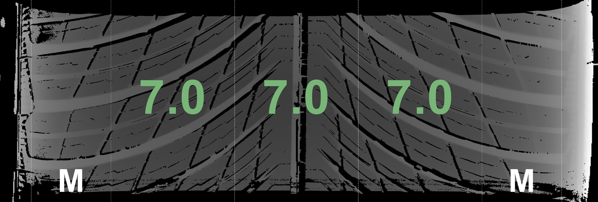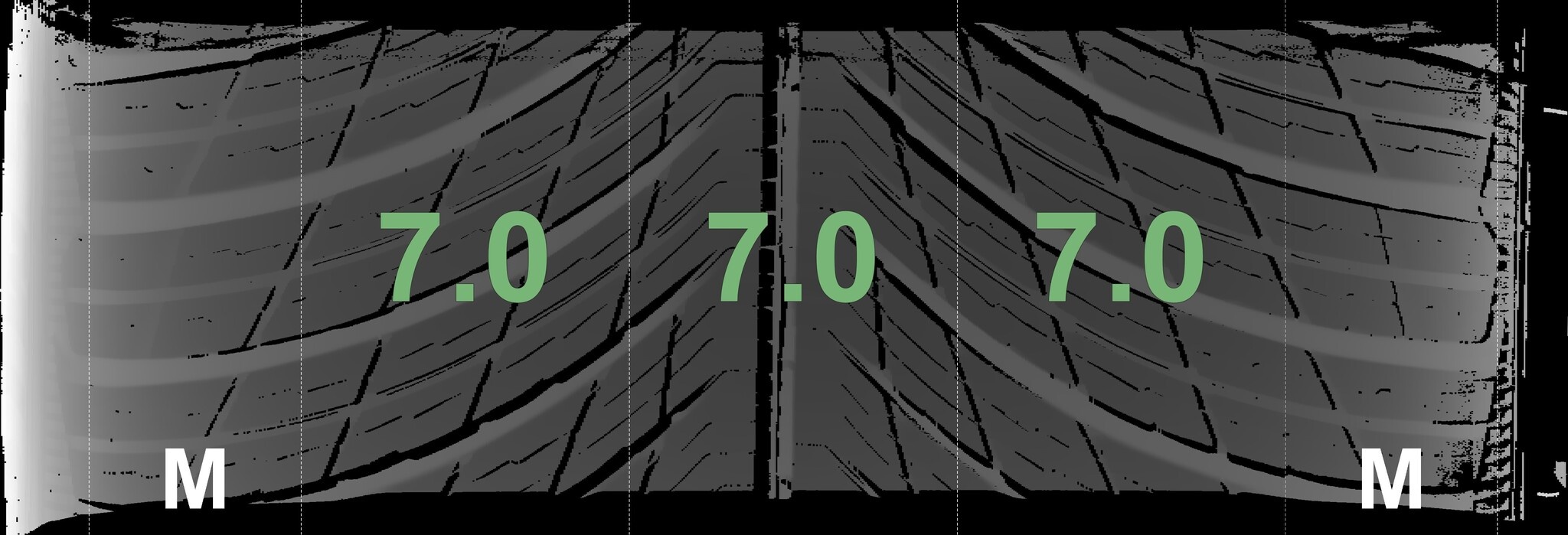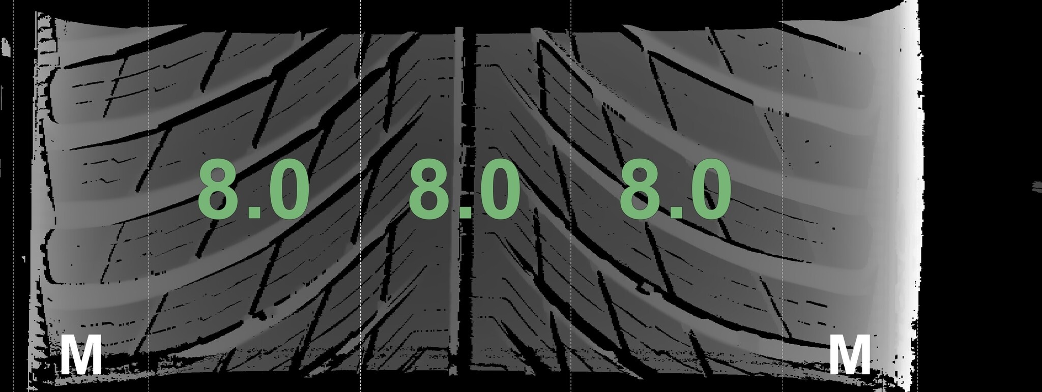 Die gemessenen Profiltiefen und die Details der Felgen sind oben angegeben.