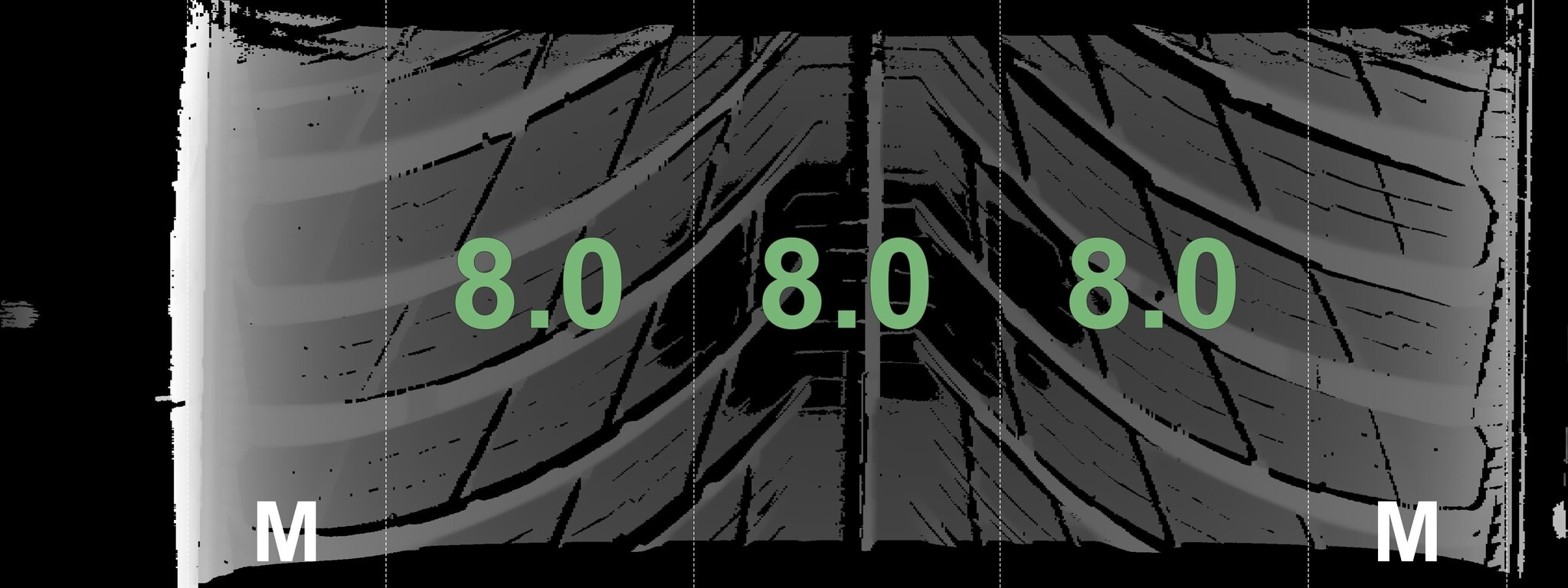 | Zustand | Profiltiefe | DOT | Vorderachse Links | Gebraucht | 8.0 mm | 2723 |
