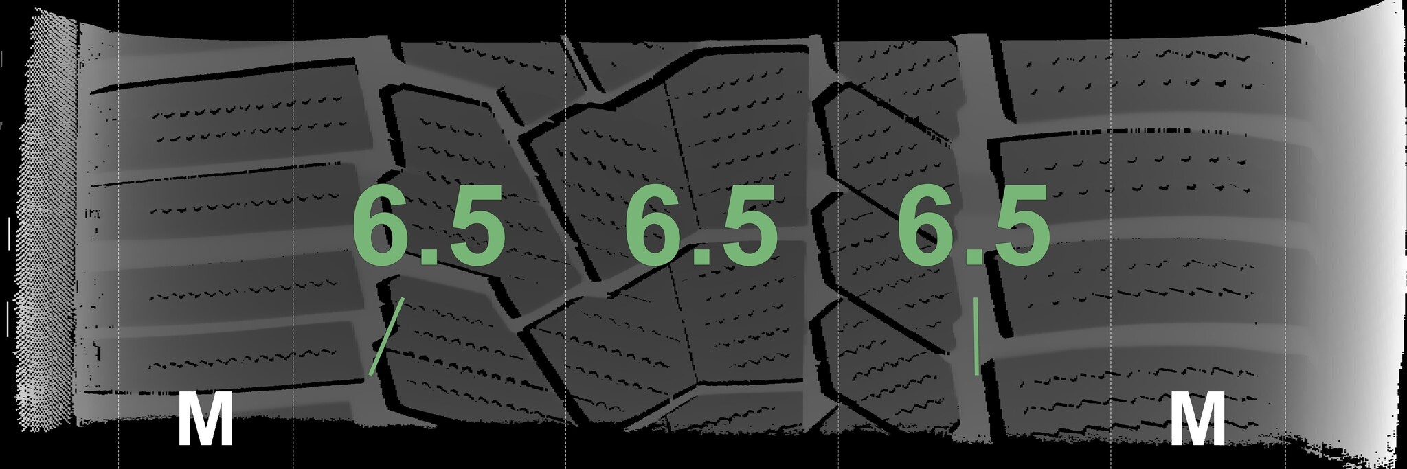 | Zustand | Profiltiefe | DOT | Hinterachse Rechts | Gebraucht | 6,5 mm | 5022 |