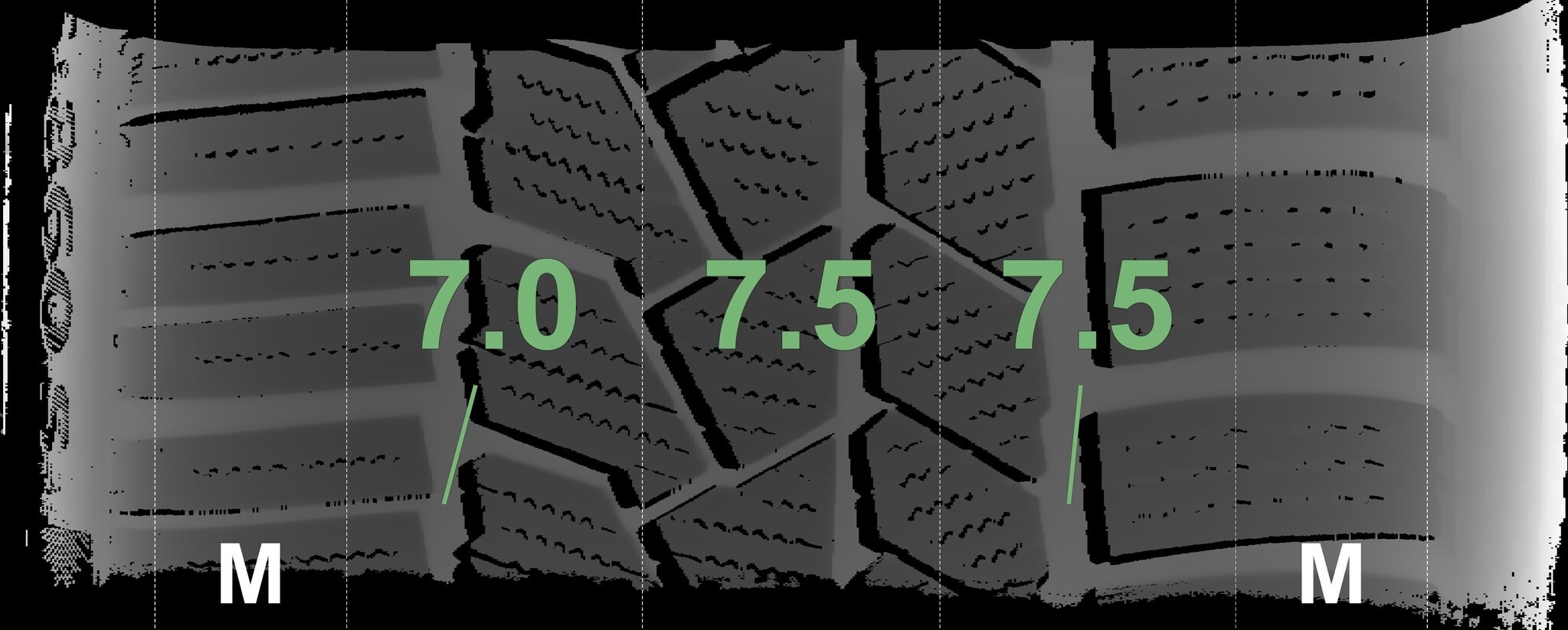 Die gemessenen Profiltiefen und Details zu den Felgen sind oben abgebildet.