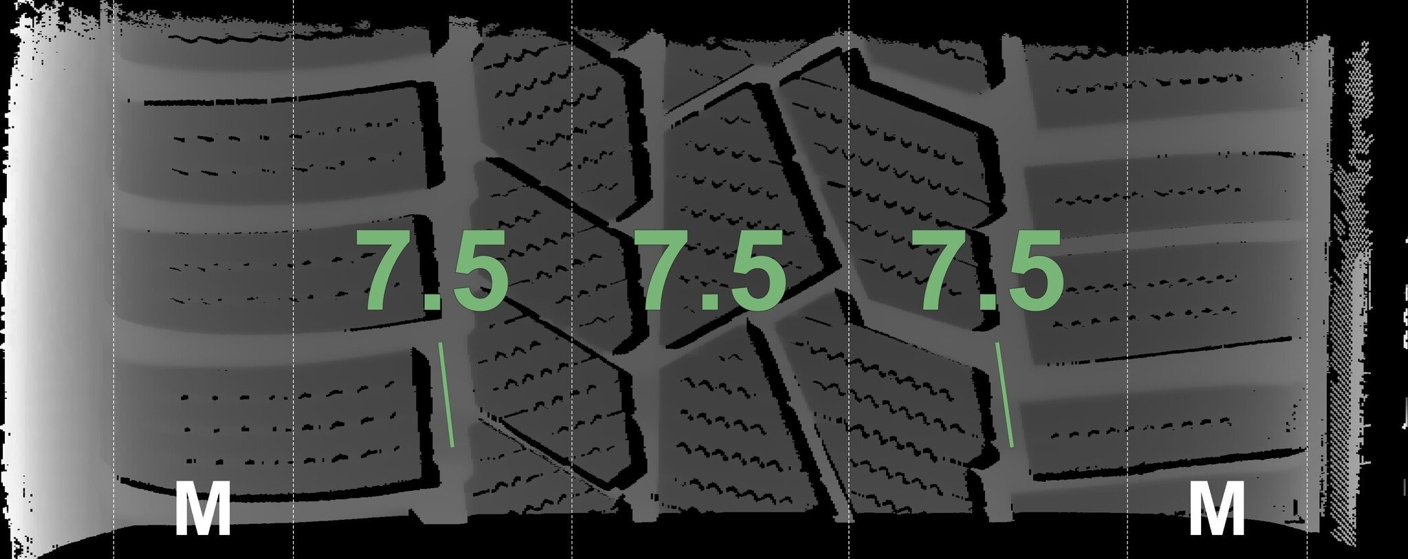 | Zustand | Profiltiefe | DOT | Vorderachse Links | Gebraucht | 7,5 mm | 1523 |