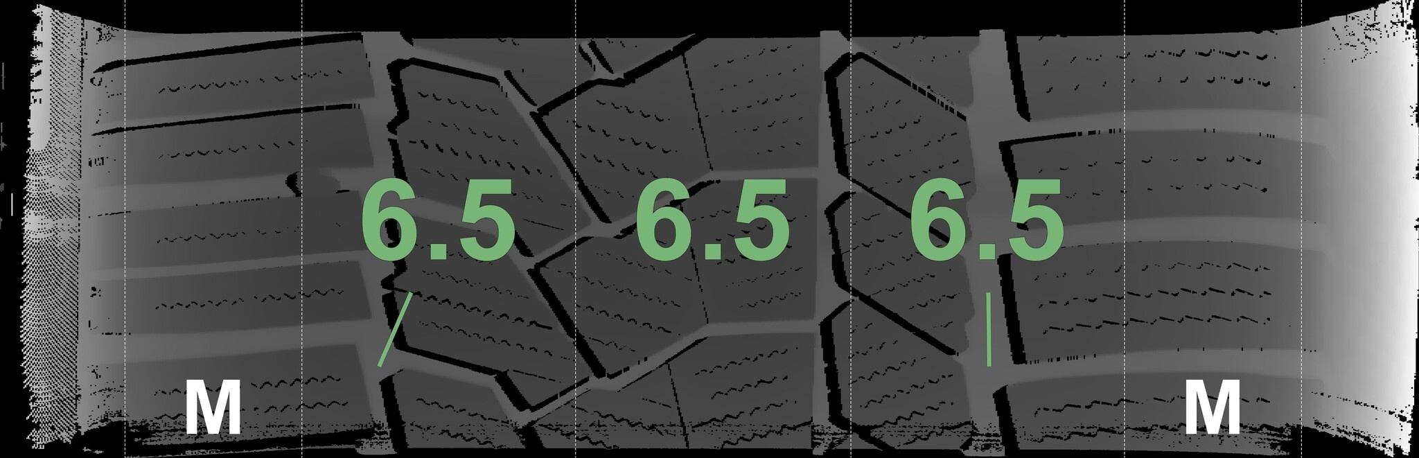 | Zustand | Profiltiefe | DOT | Vorderachse Links | Gebraucht | 6,5 mm | 3522 |